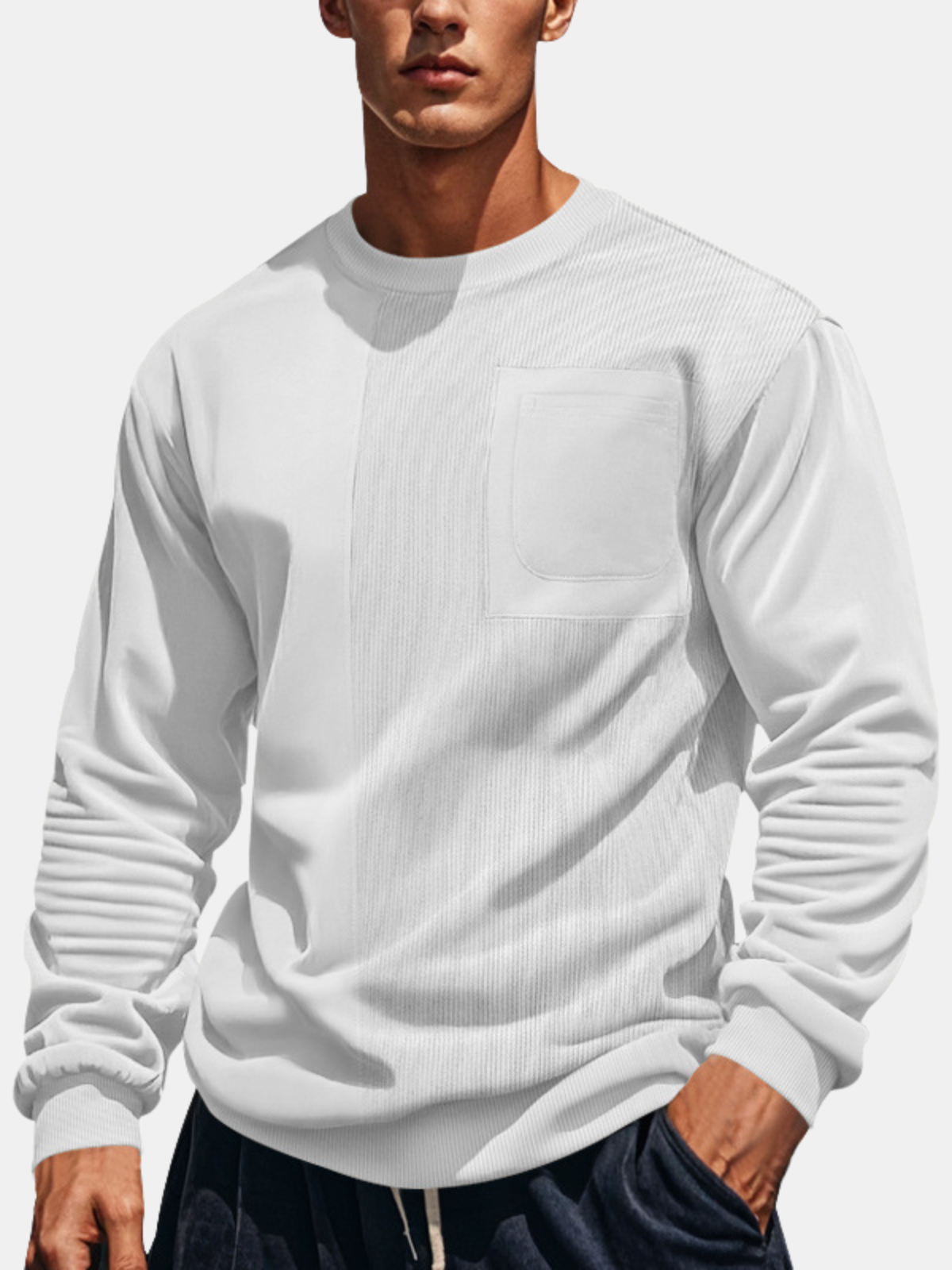 Men's Causal Solid Color Corduroy Crewneck Pocket Pullover Long Sleeve Sweatshirt