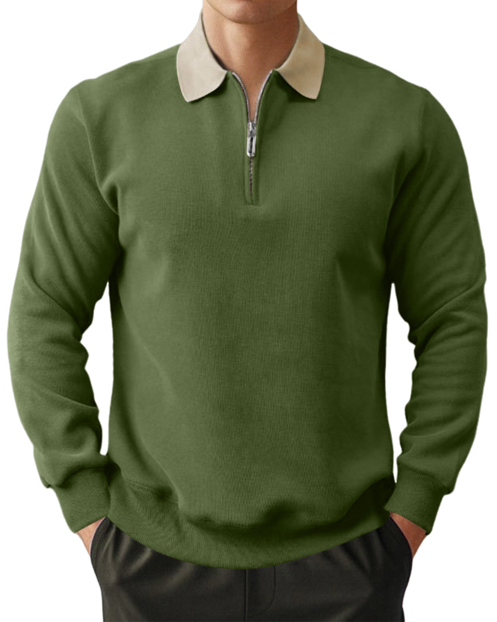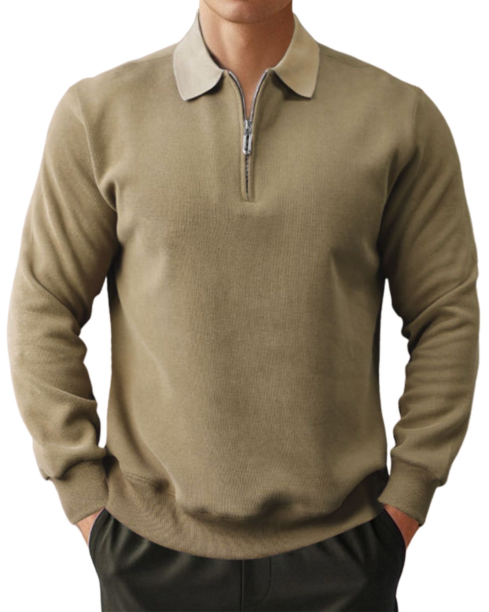 Men's Fashion Casual Lapel Zipper Long Sleeve Polo Shirt