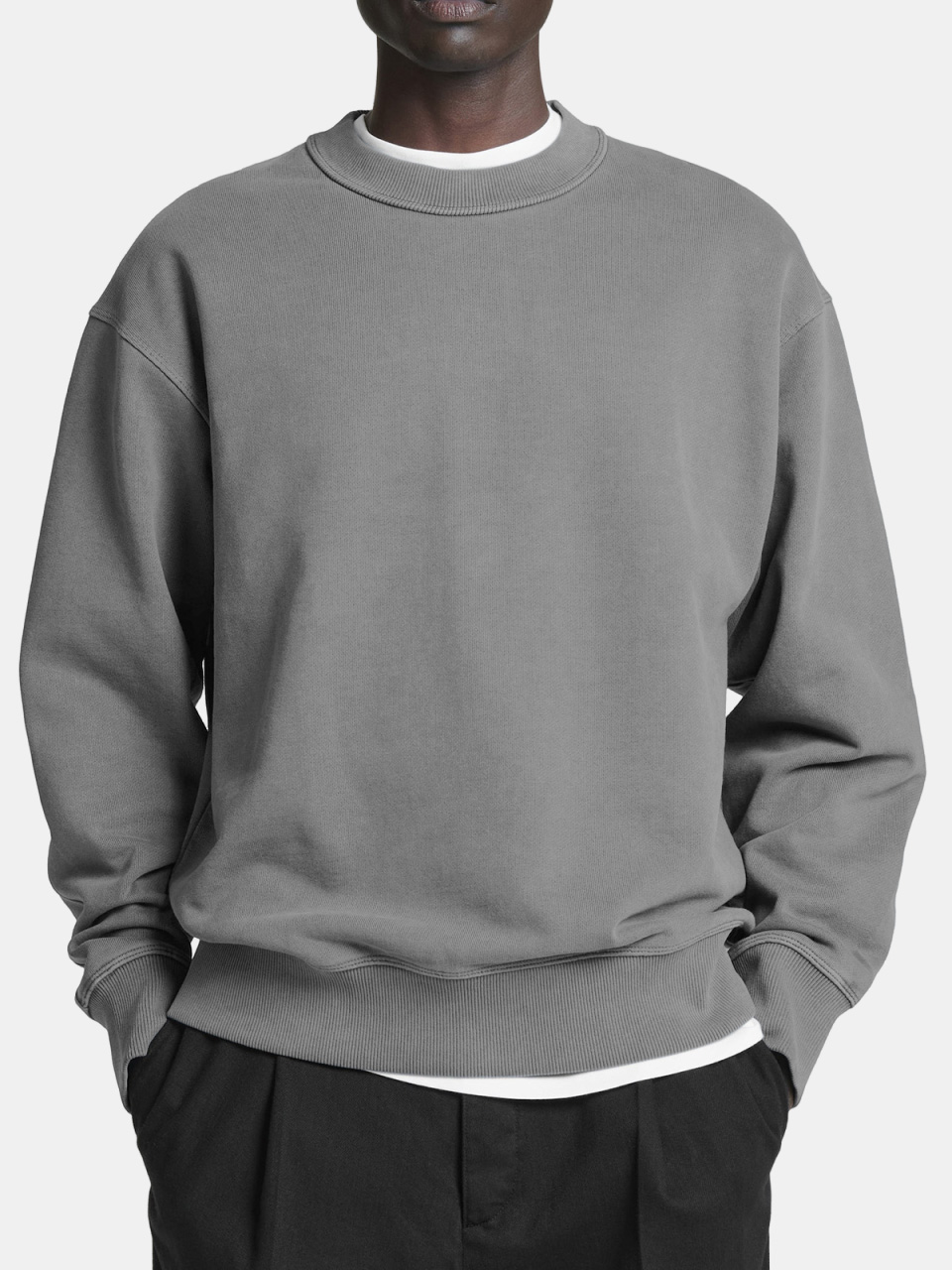 Men's Casual And Comfortable Solid Color Design Pure Cotton Round Neck Long-sleeved Sweatshirt