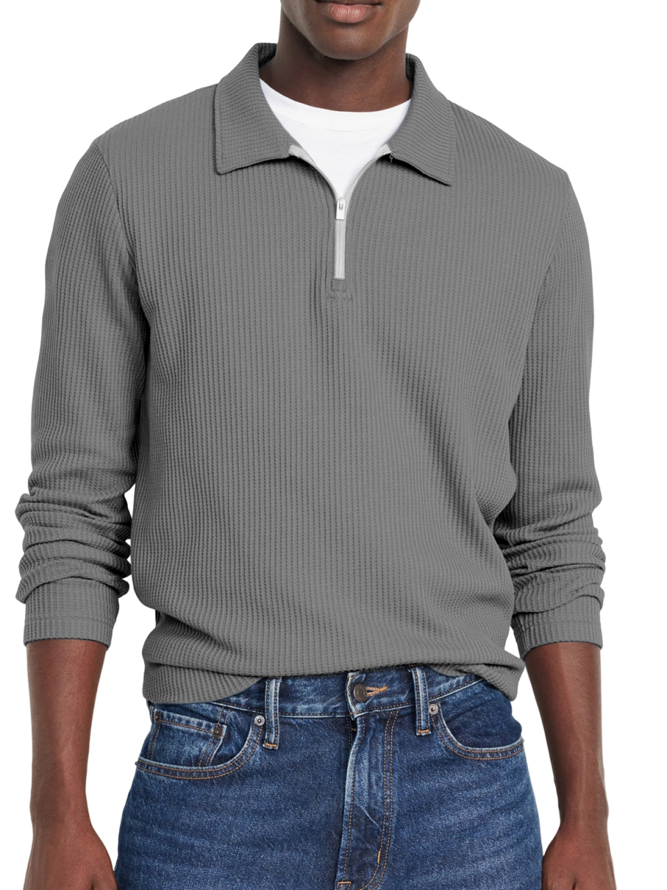 Men's Everyday Solid Color Waffle Lapel Zipper Polo Shirt
