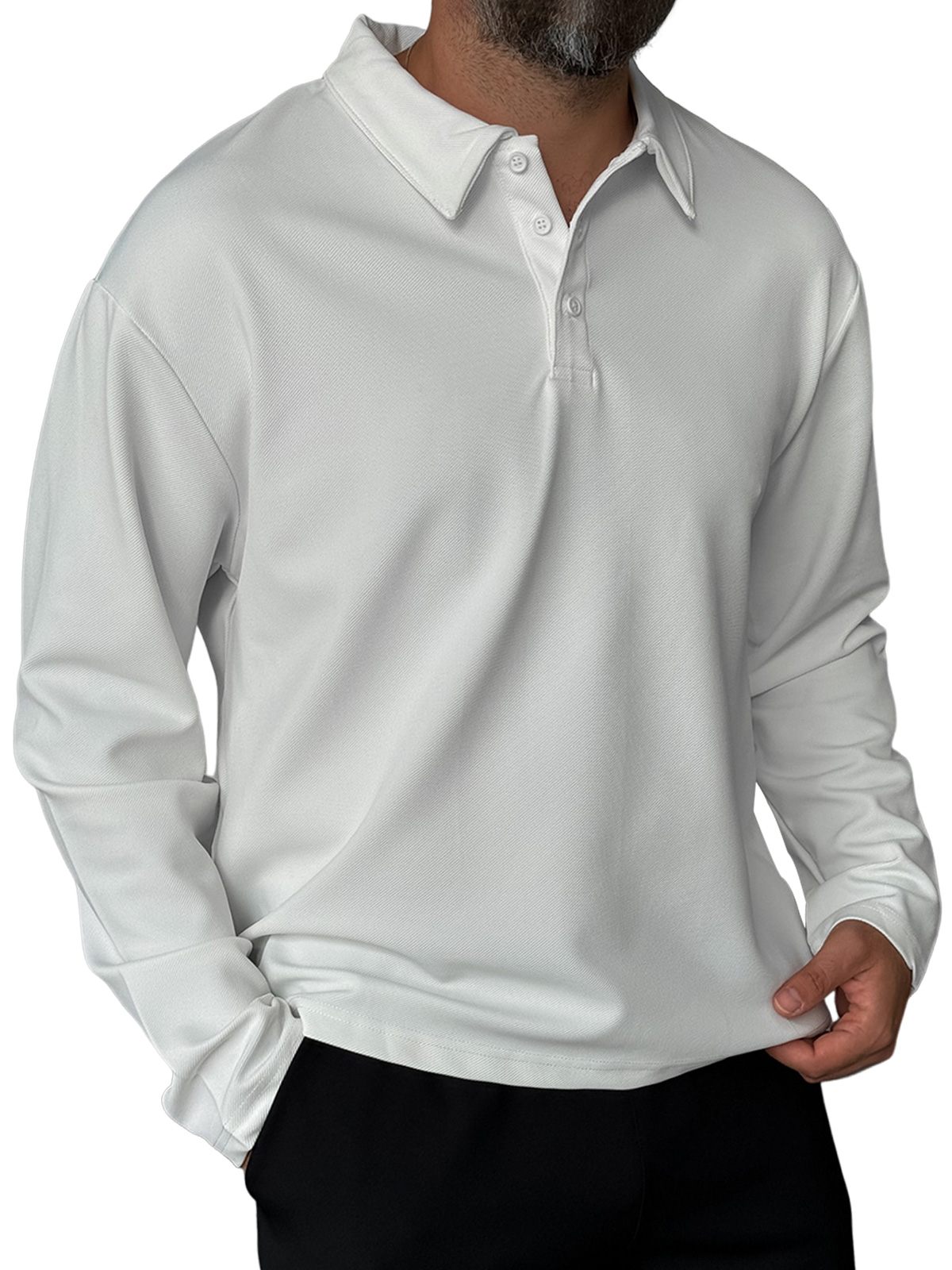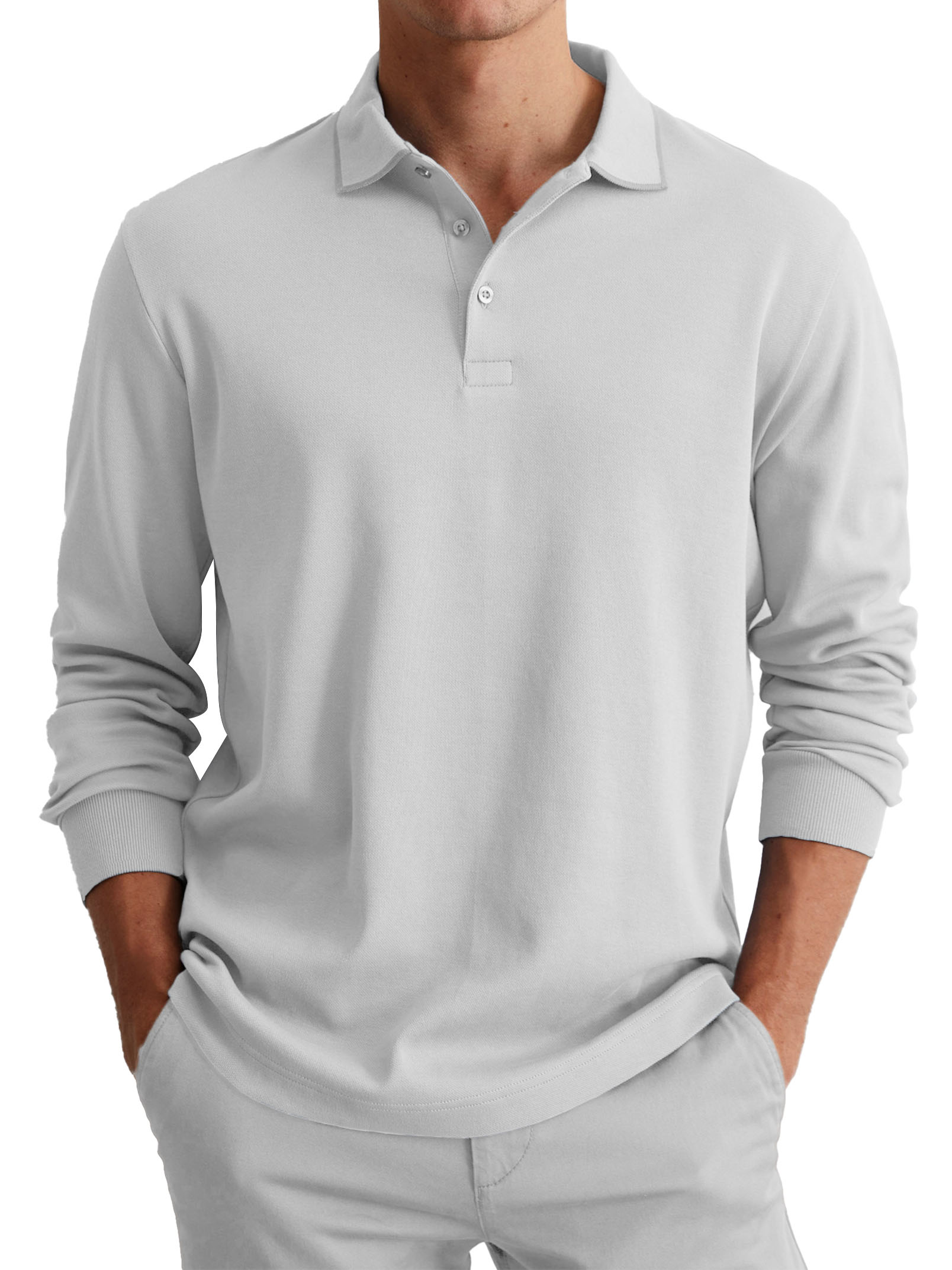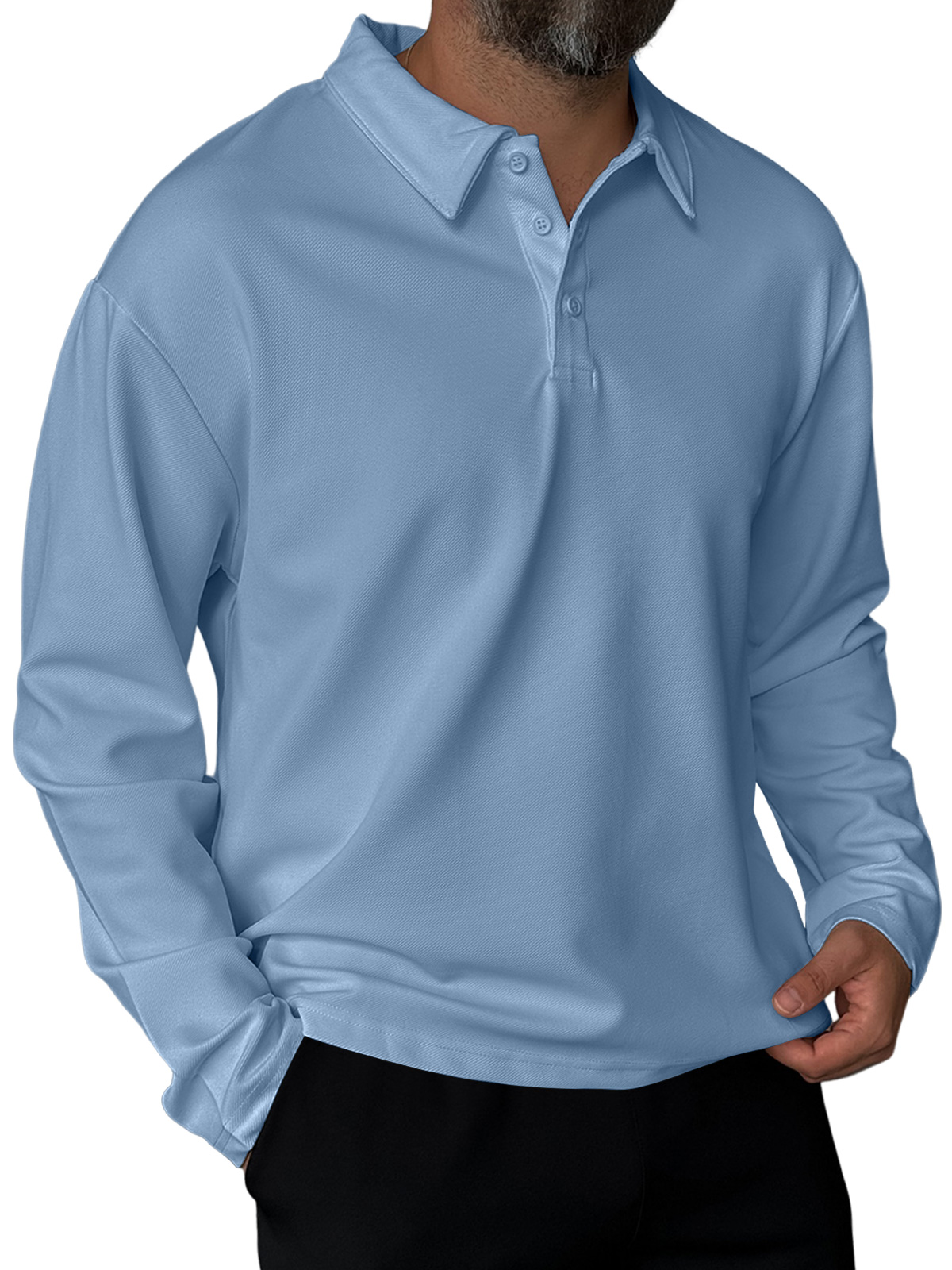 Men's Daily Casual Solid Color Long Sleeve Polo Shirt