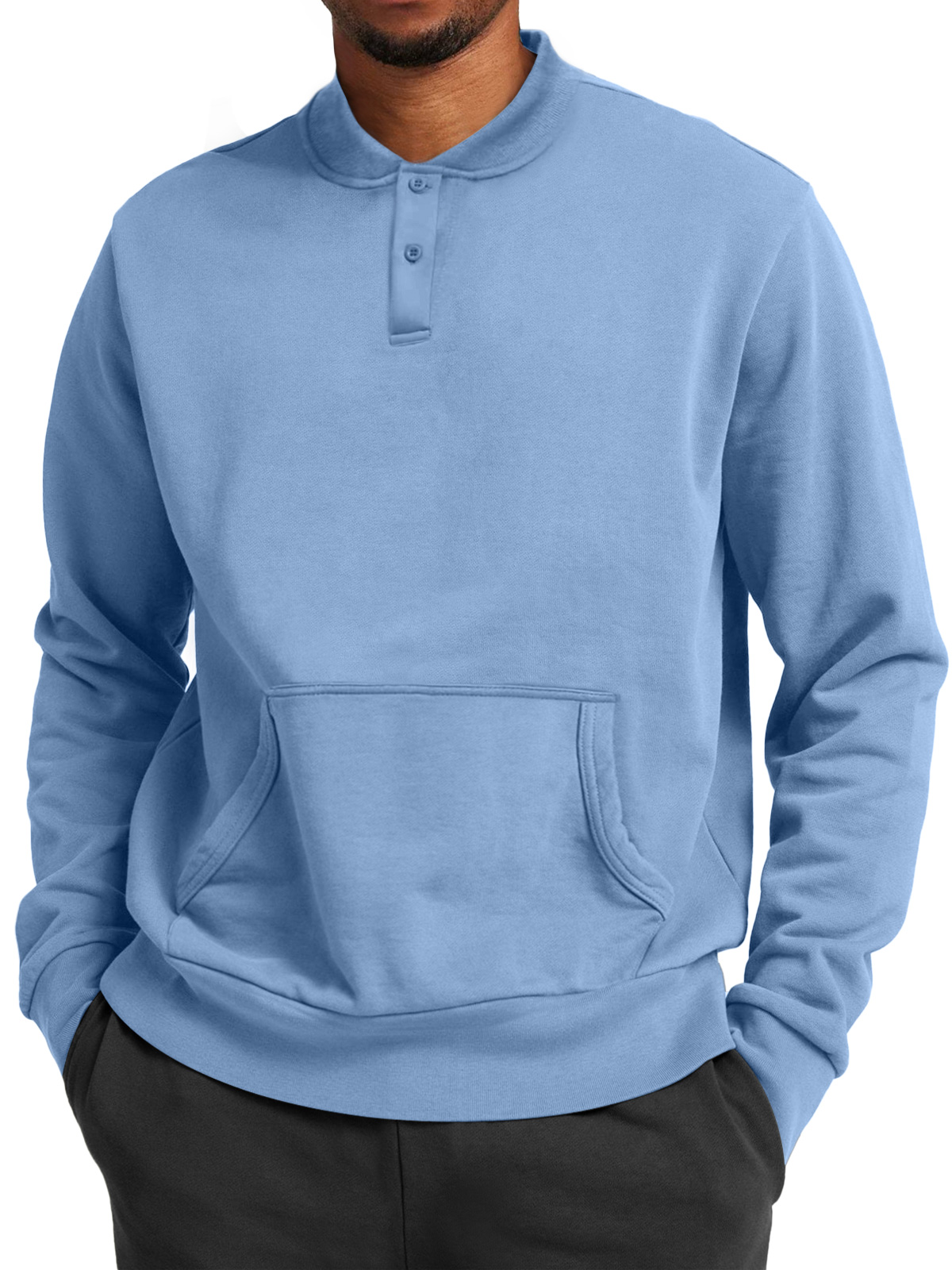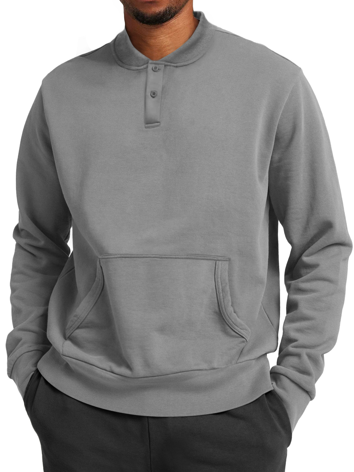 Men's Casual Stand Collar Button Solid Color Comfortable Sweatshirt