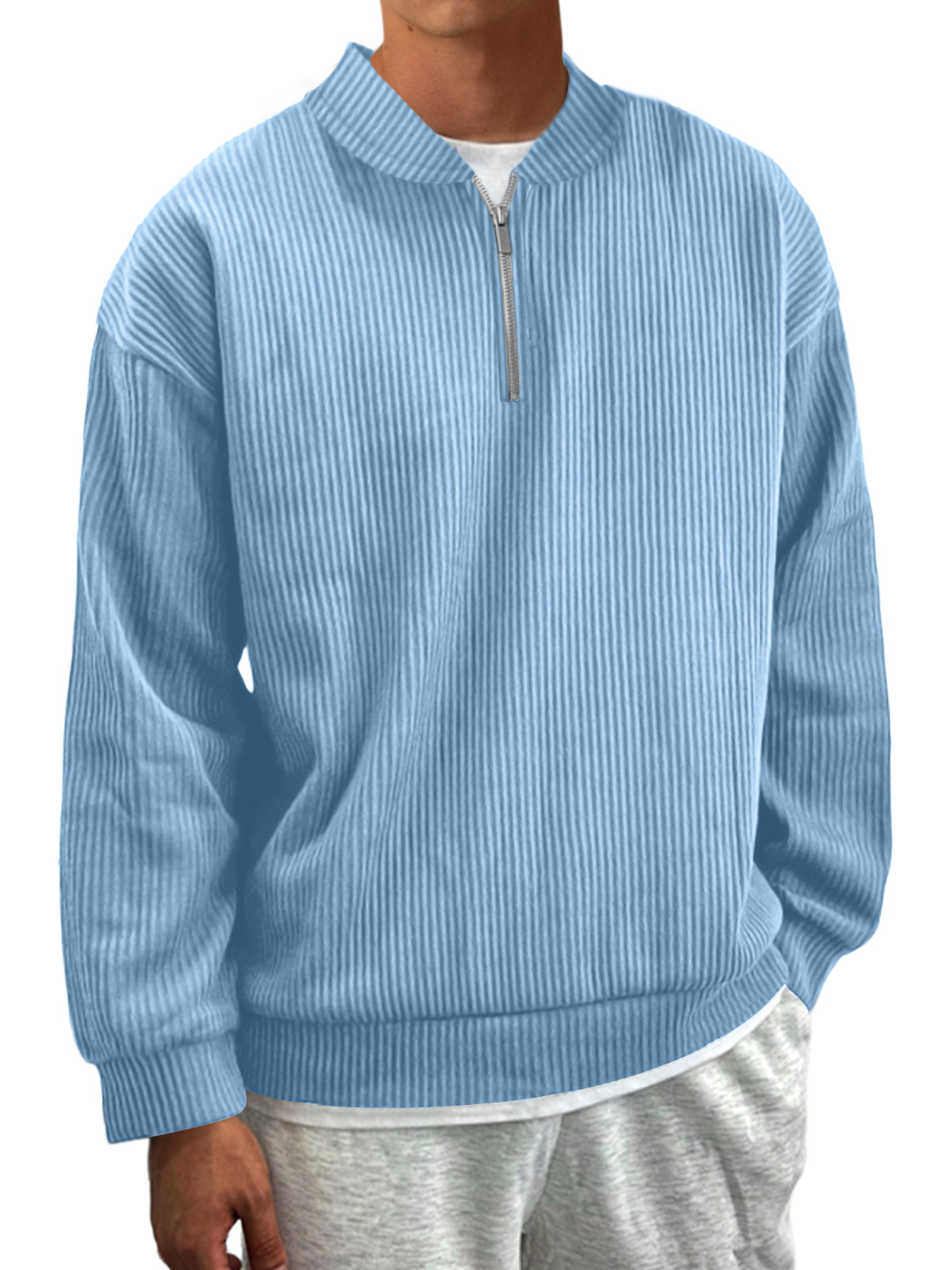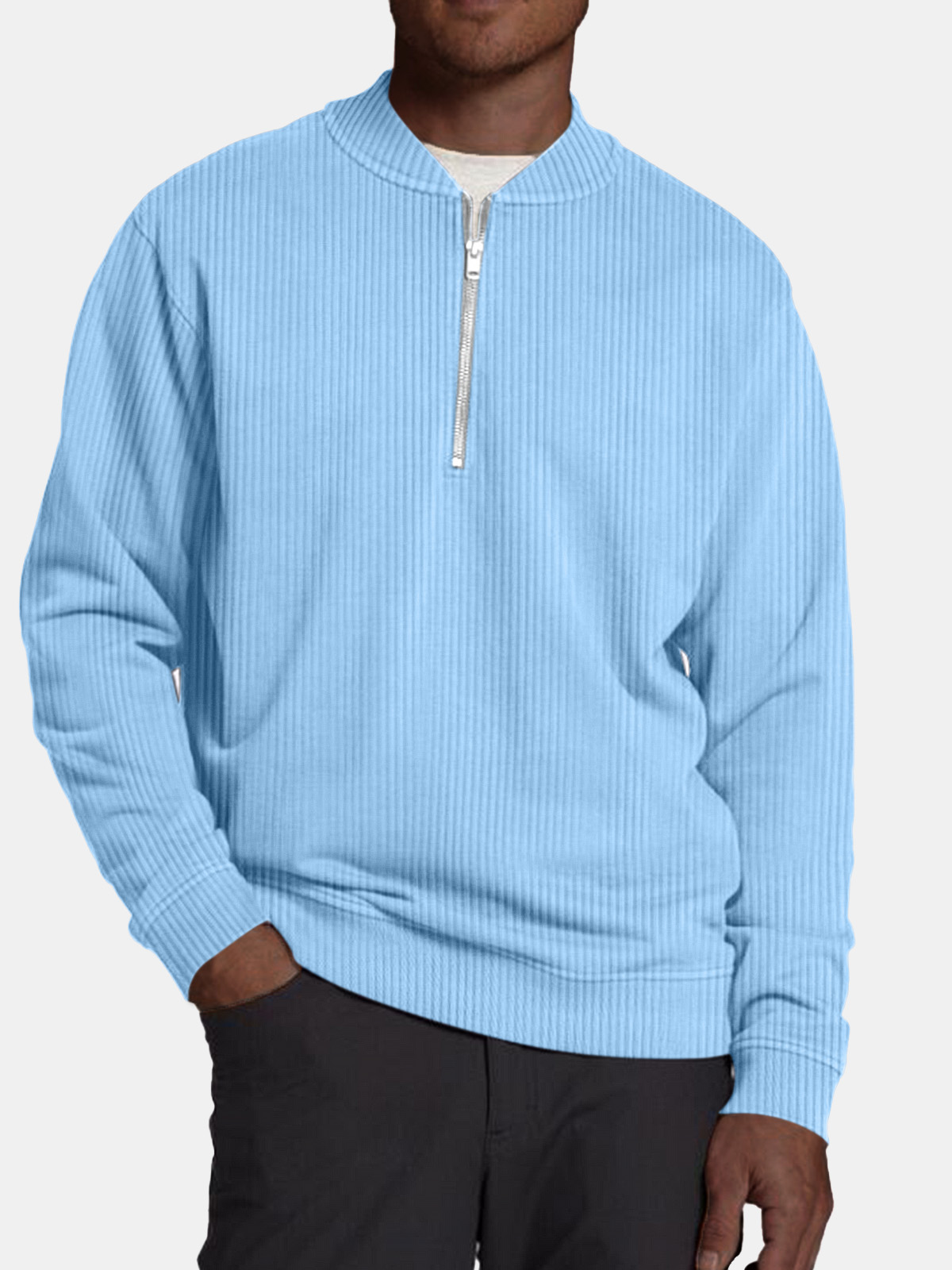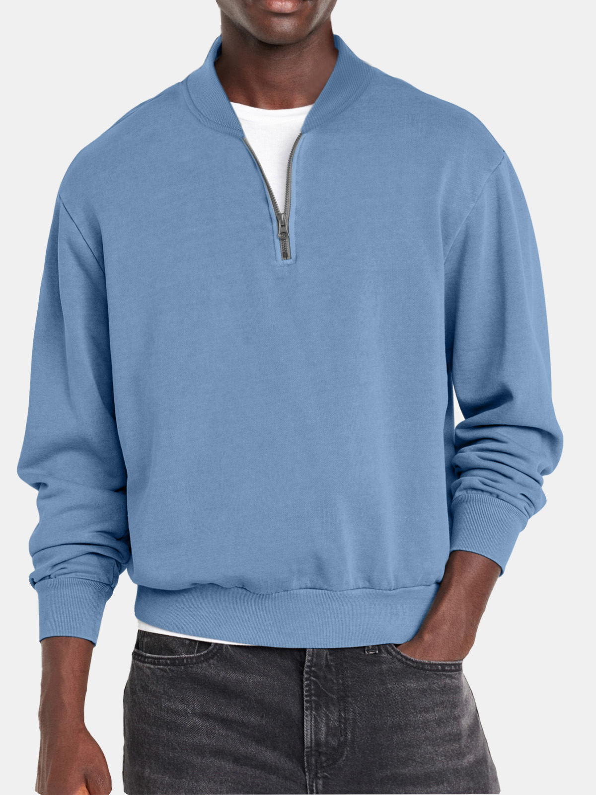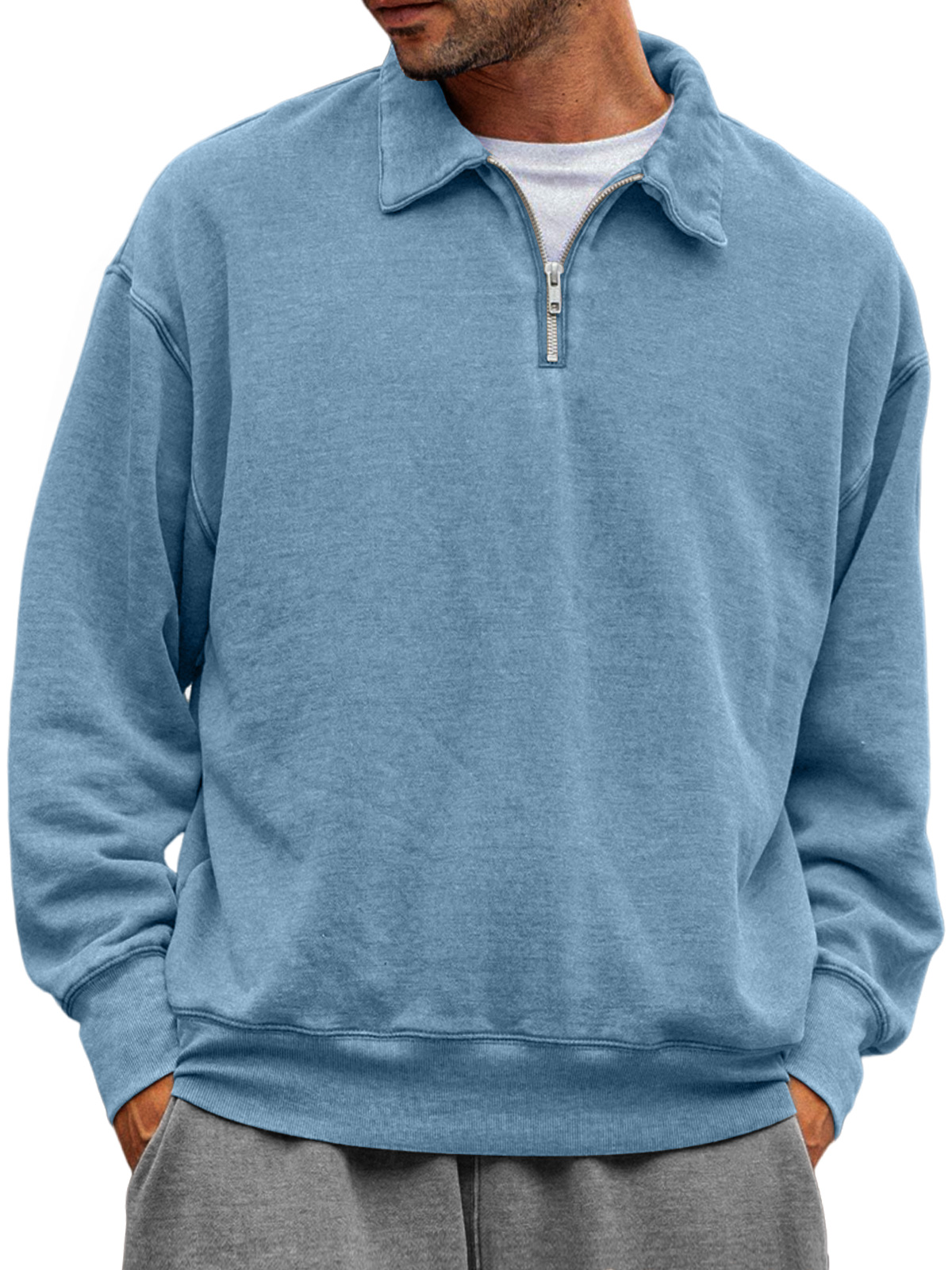 Men's Casual Half-zip Lapel Solid Color Comfortable Sweatshirt