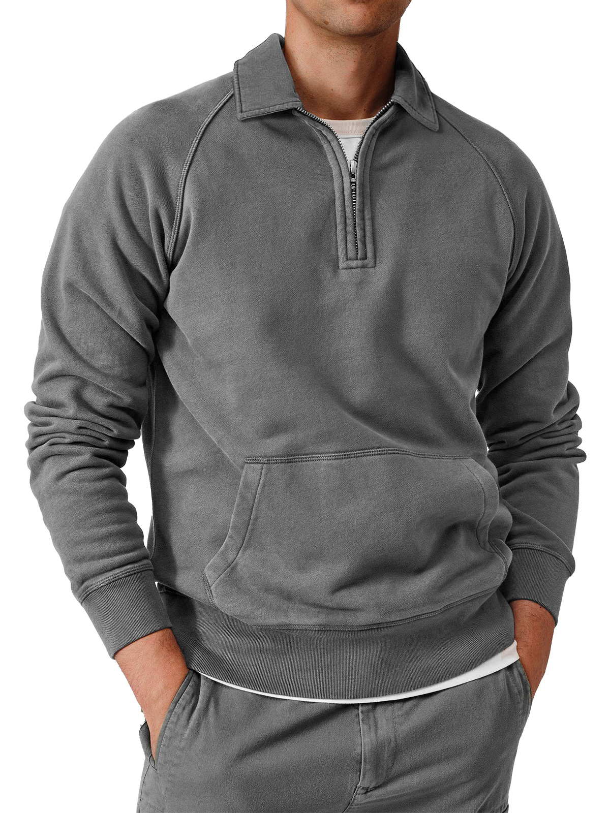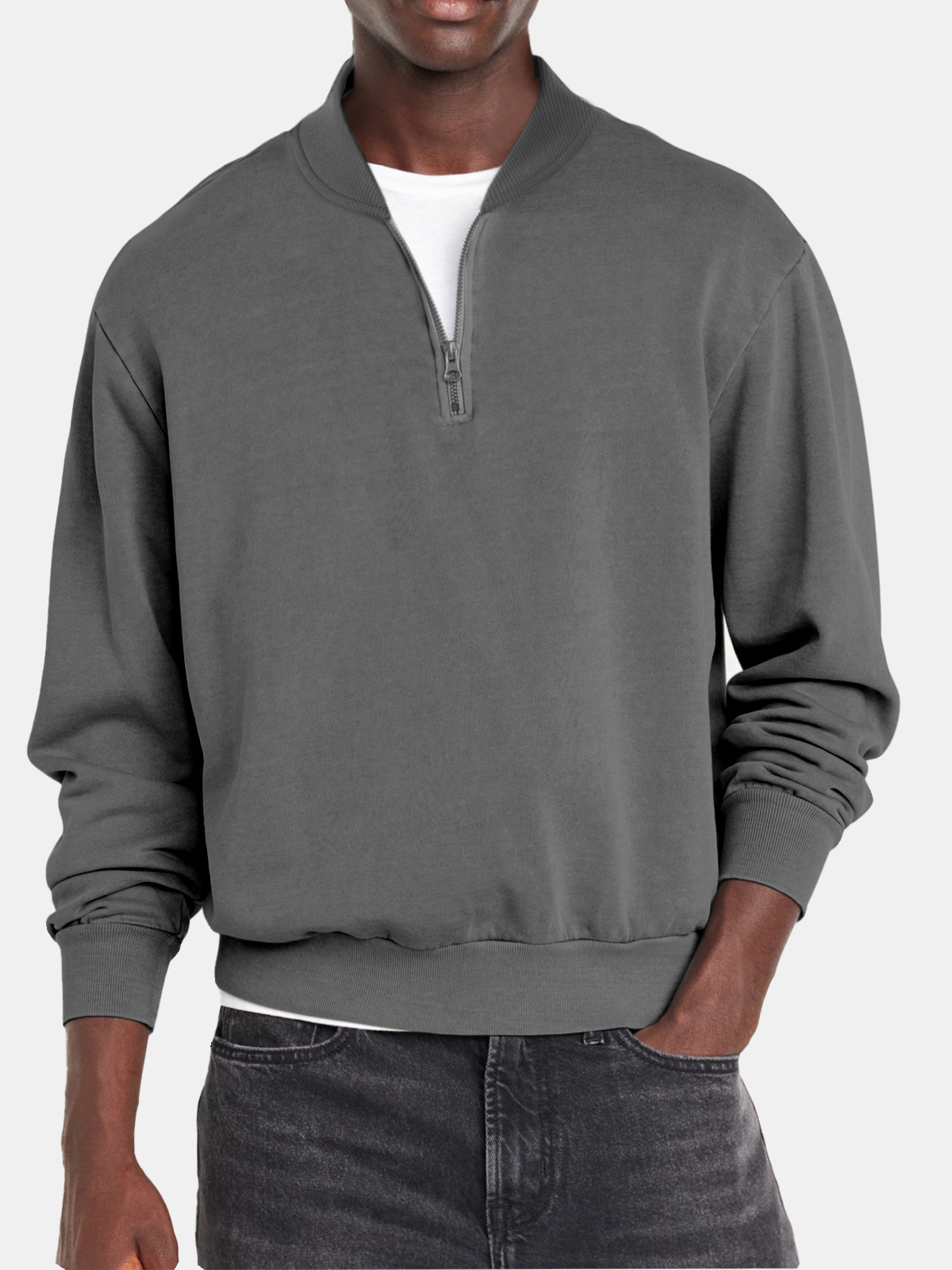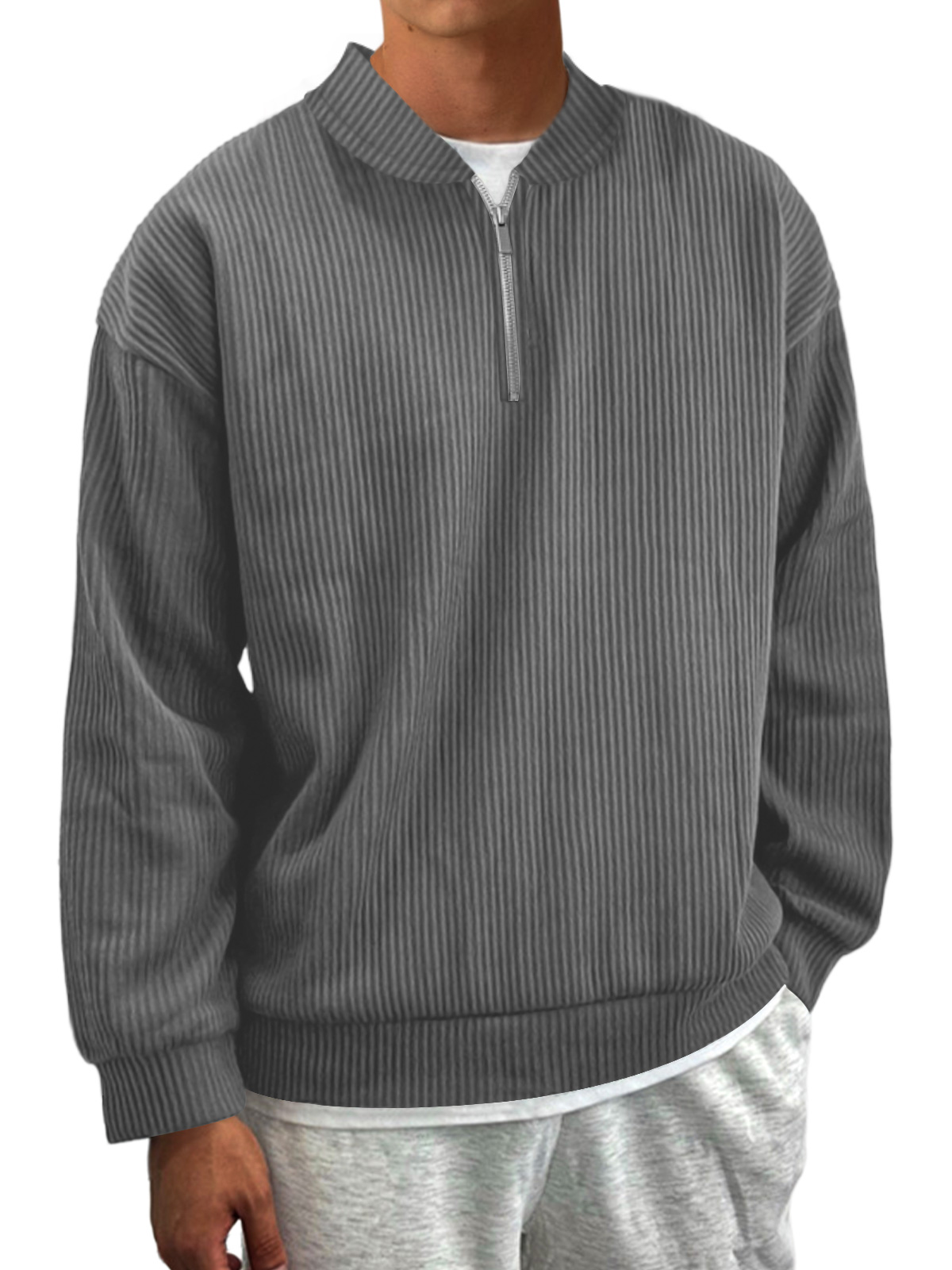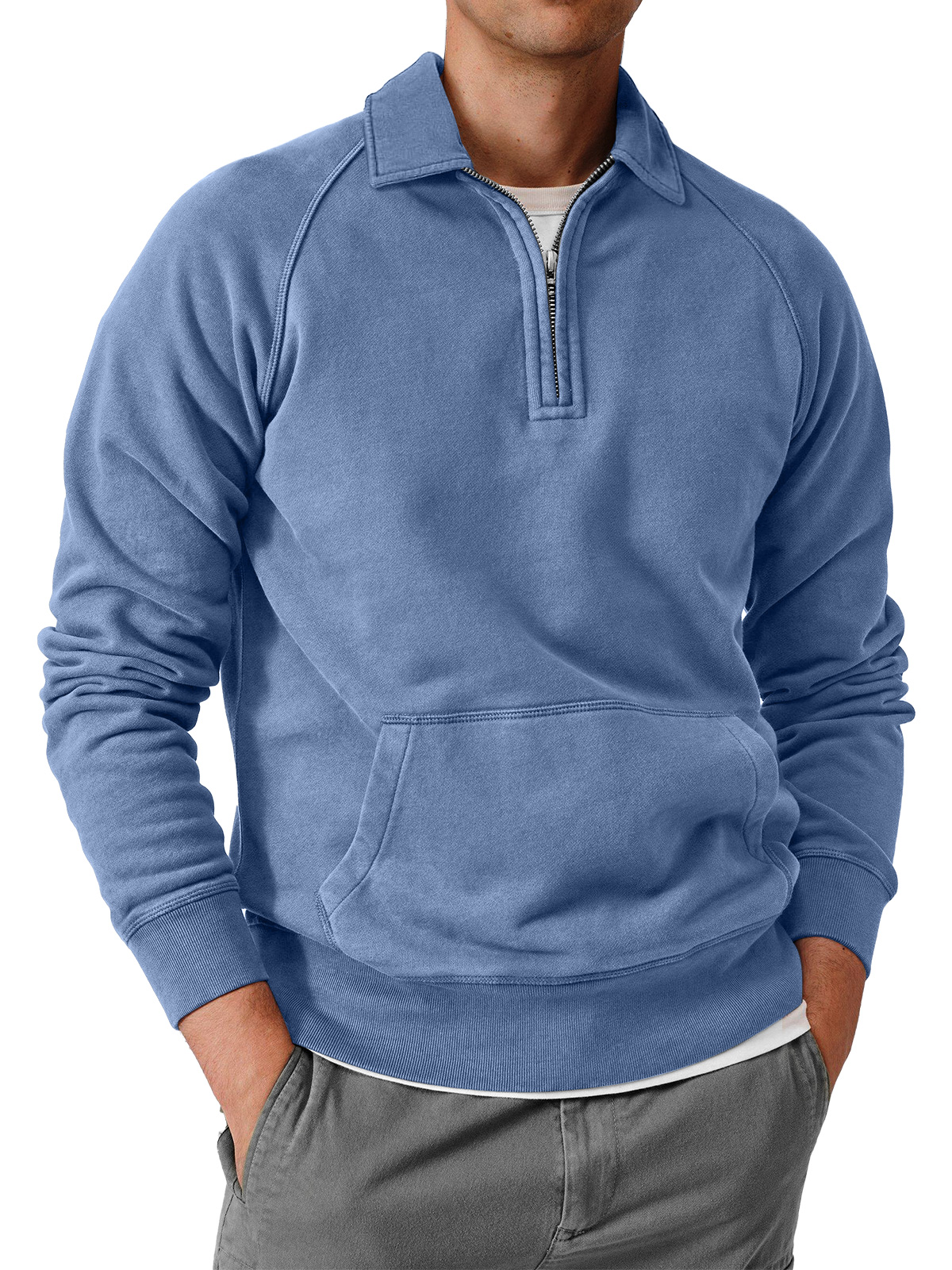 Men's Casual Half-zip Lapel Solid Color Comfortable Sweatshirt