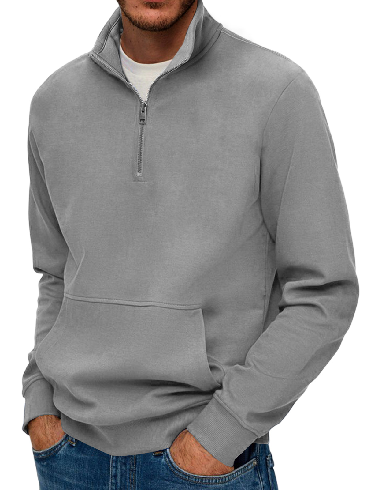 Men's casual stand collar half zipper pocket solid color sweatshirt