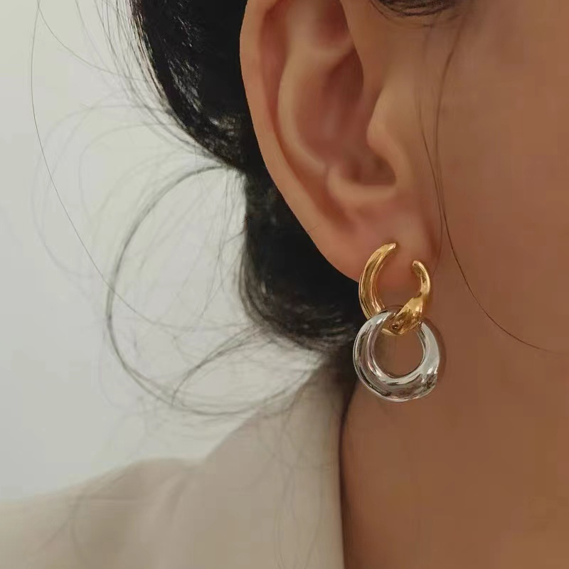 Chain elements combined with detachable structure design makes this piece special. If you want to go light for a day you can just detach them and wear it as a stud!
