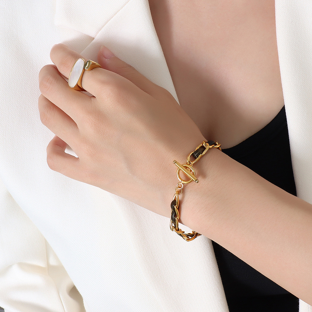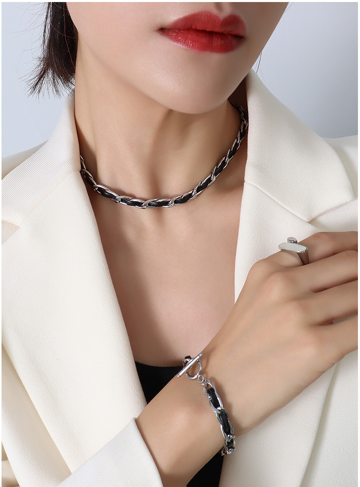 A special design embedded leather cord into the chain, promotes that mordern fashion to another level!