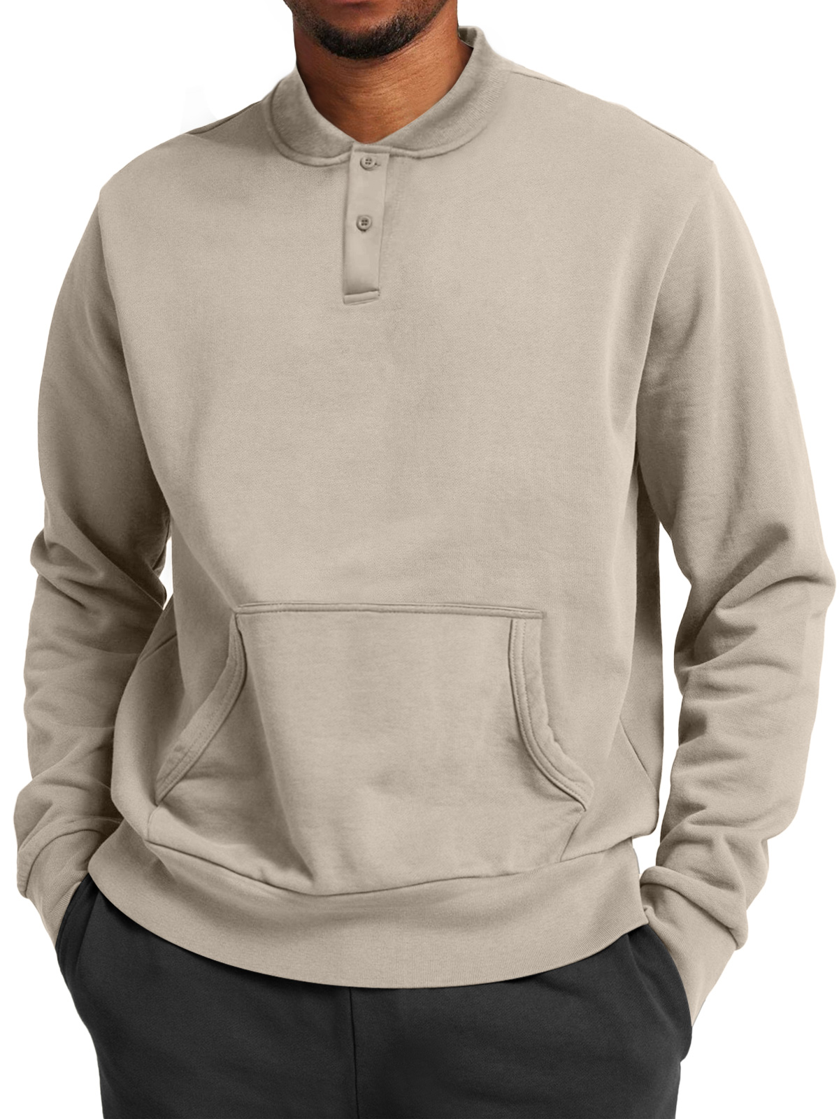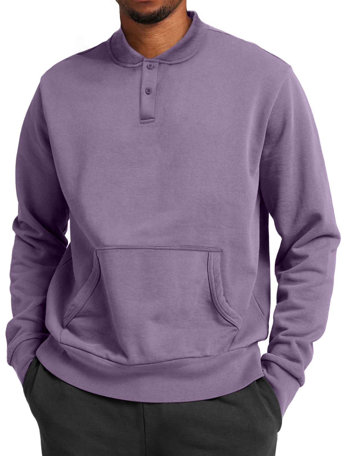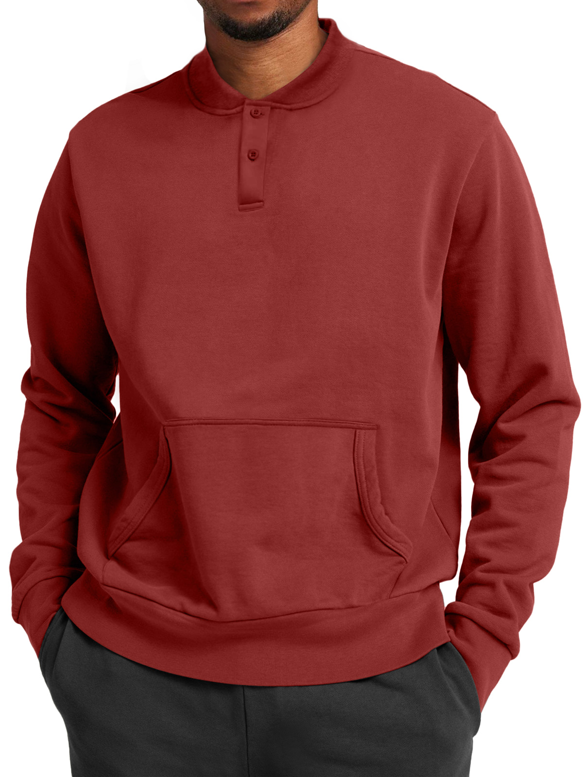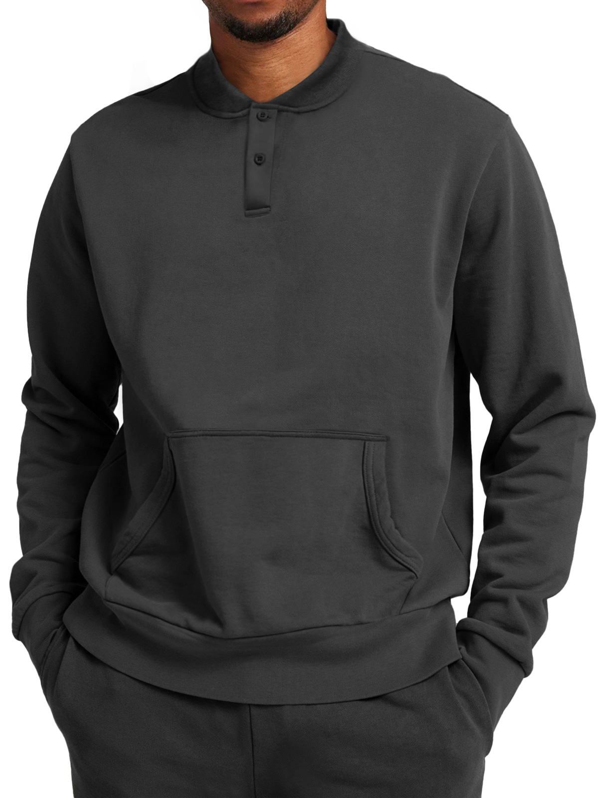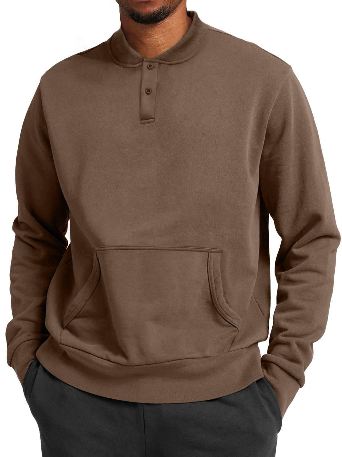 Men's Casual And Comfortable Baseball Collar Button Solid Color Pocket Sweatshirt