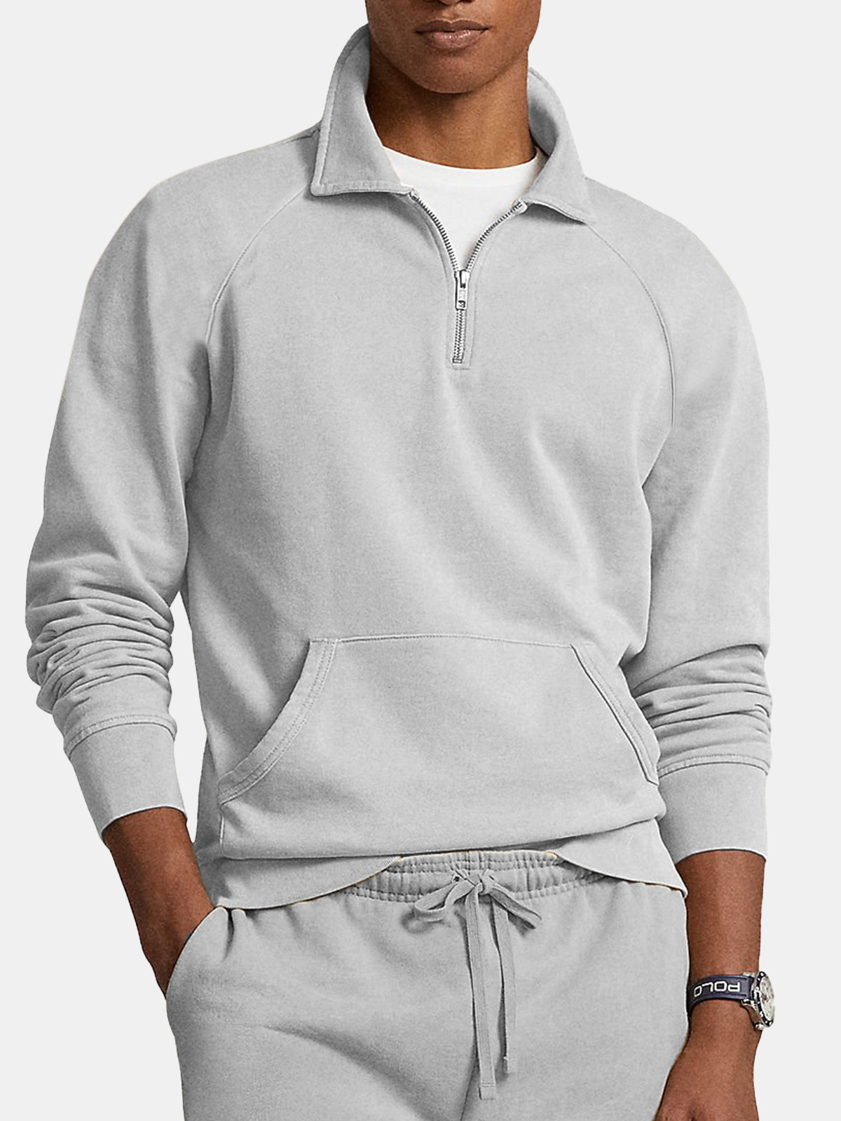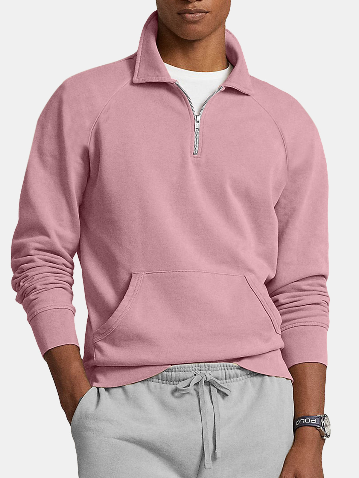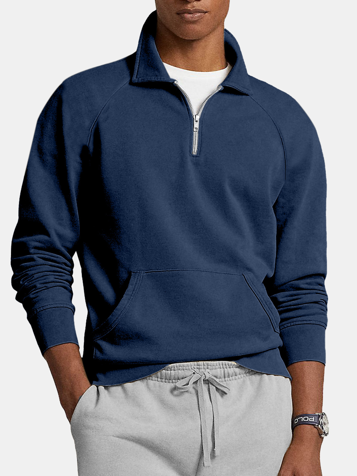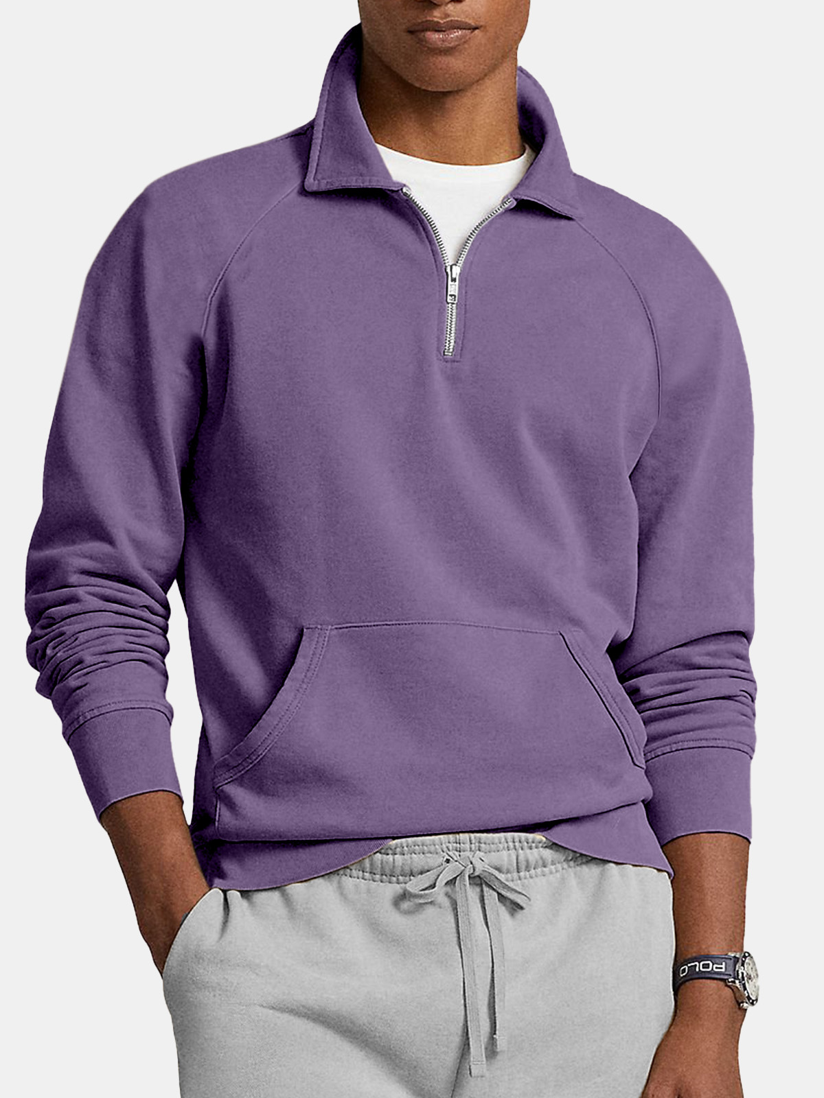 Men's Casual Comfortable Loose Solid Color Raglan Sleeve Lapel Zipper Sweatshirt