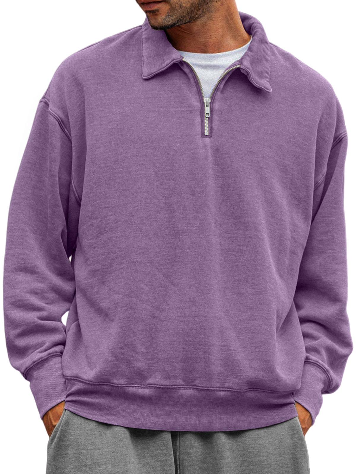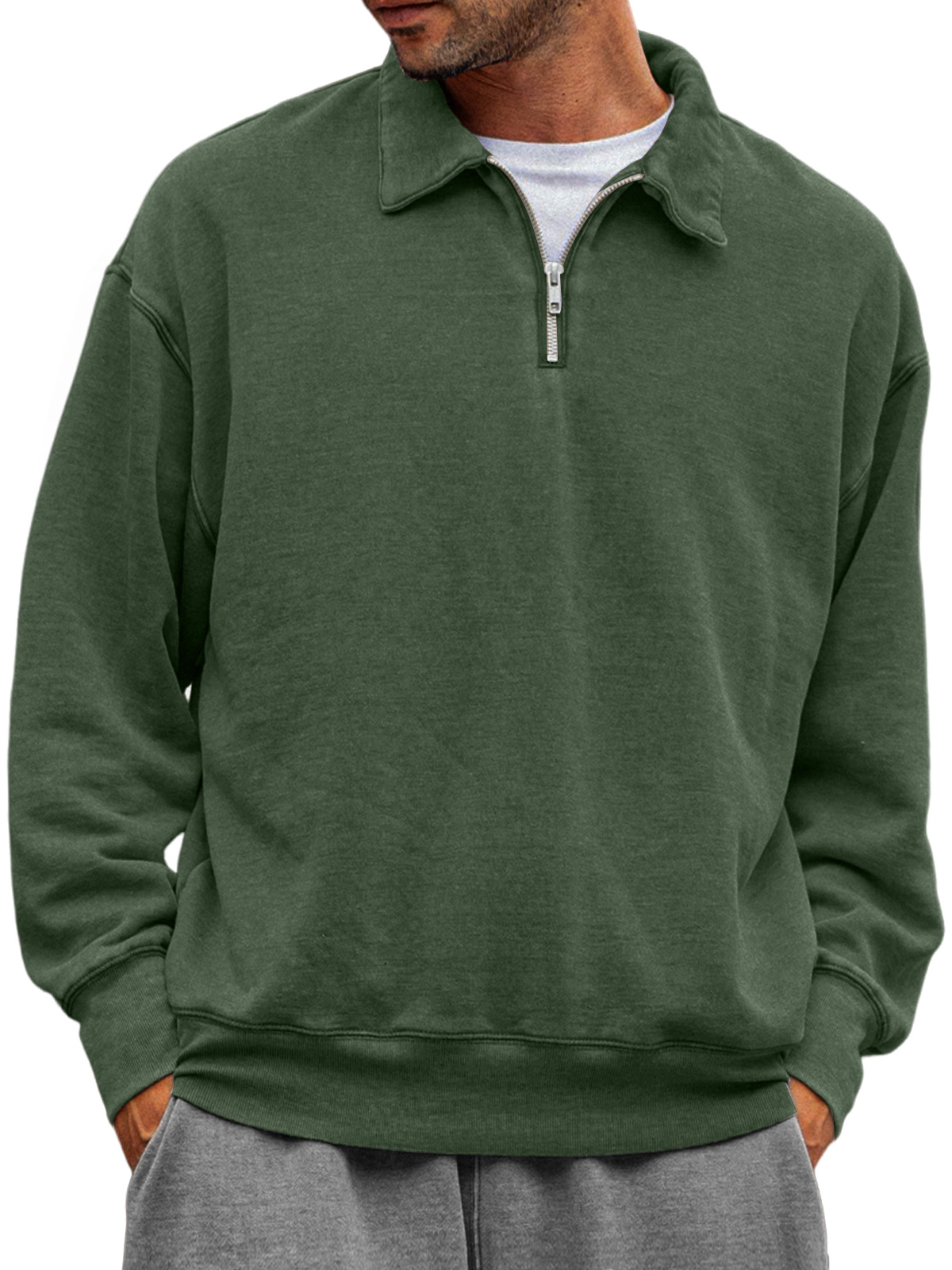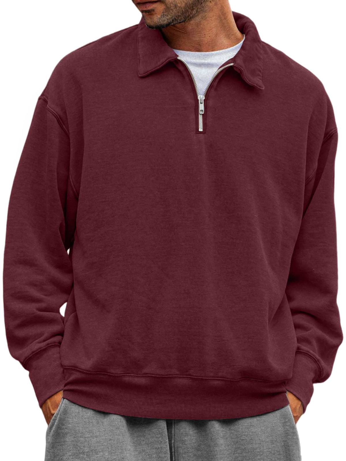 Men's Casual Half-zip Lapel Solid Color Comfortable Sweatshirt