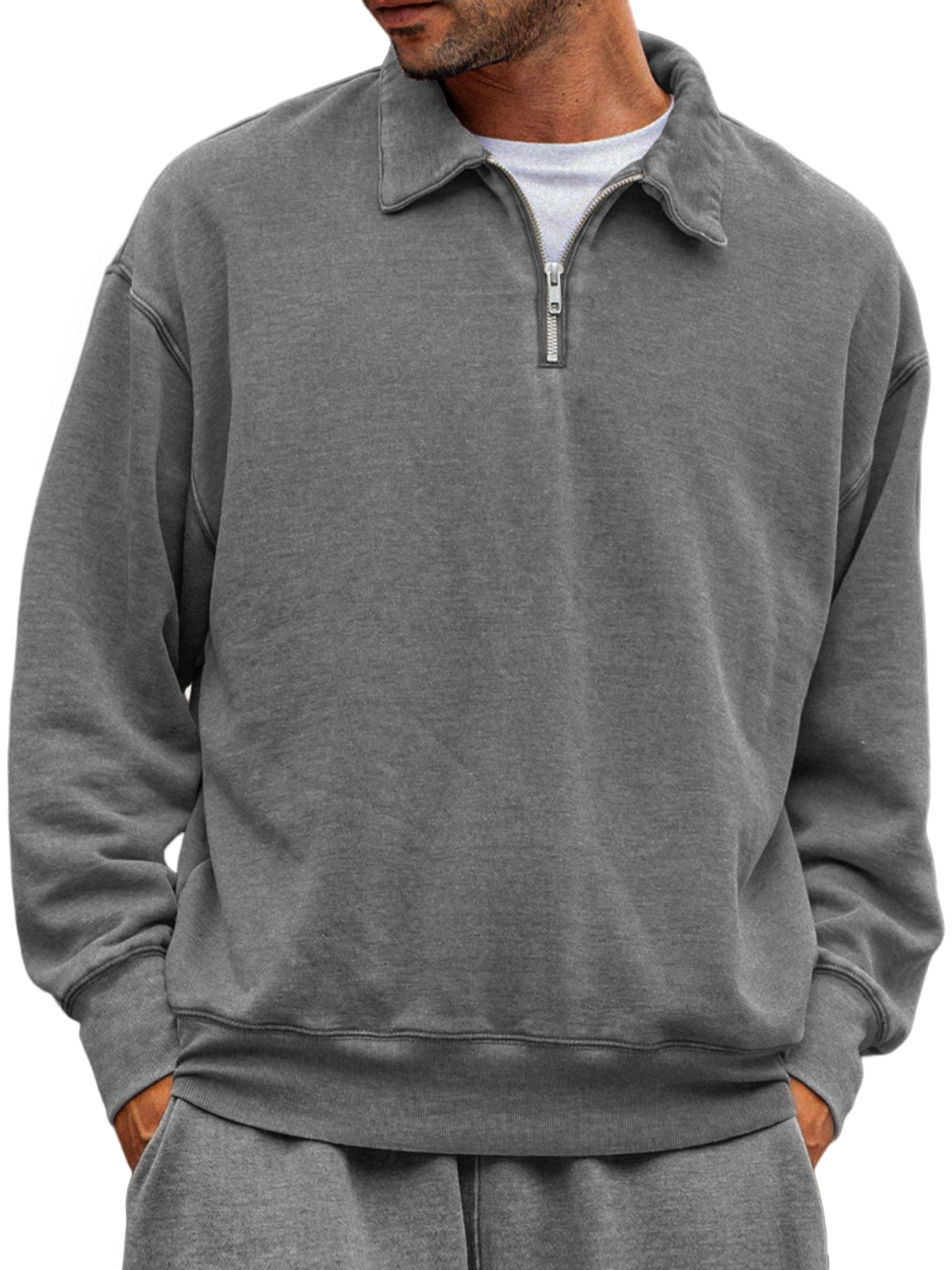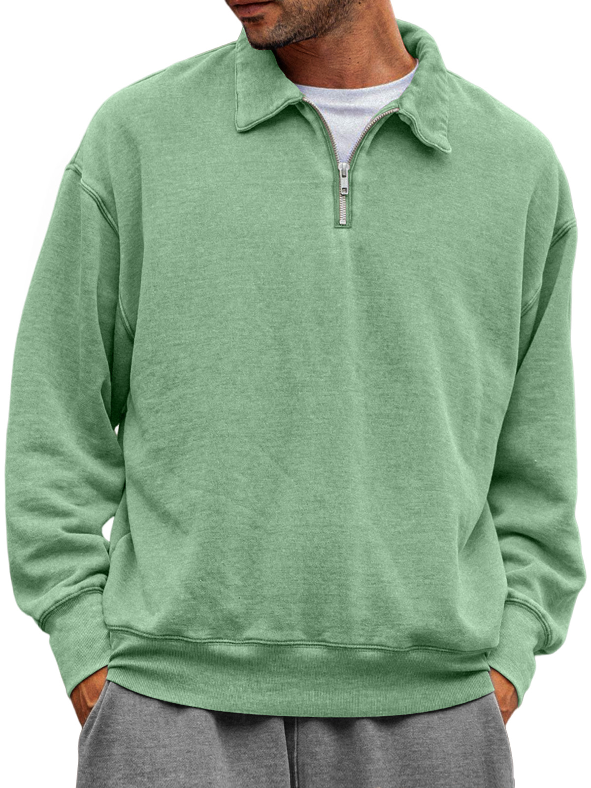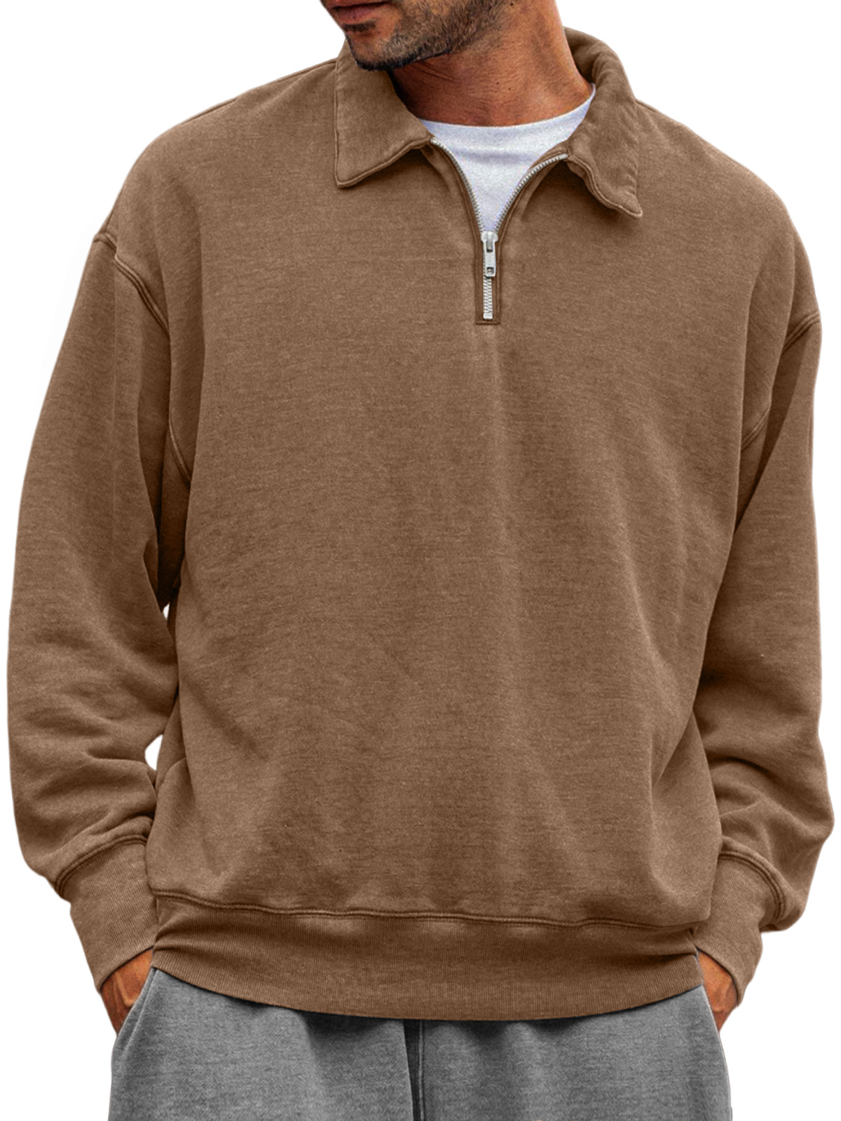 Men's Casual Half-zip Lapel Solid Color Comfortable Sweatshirt