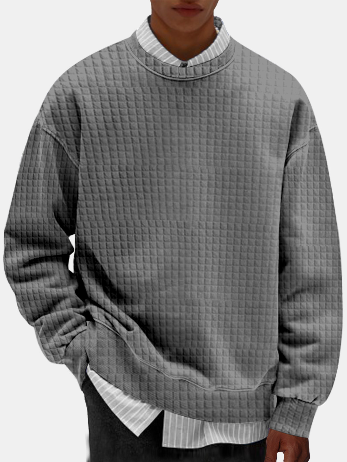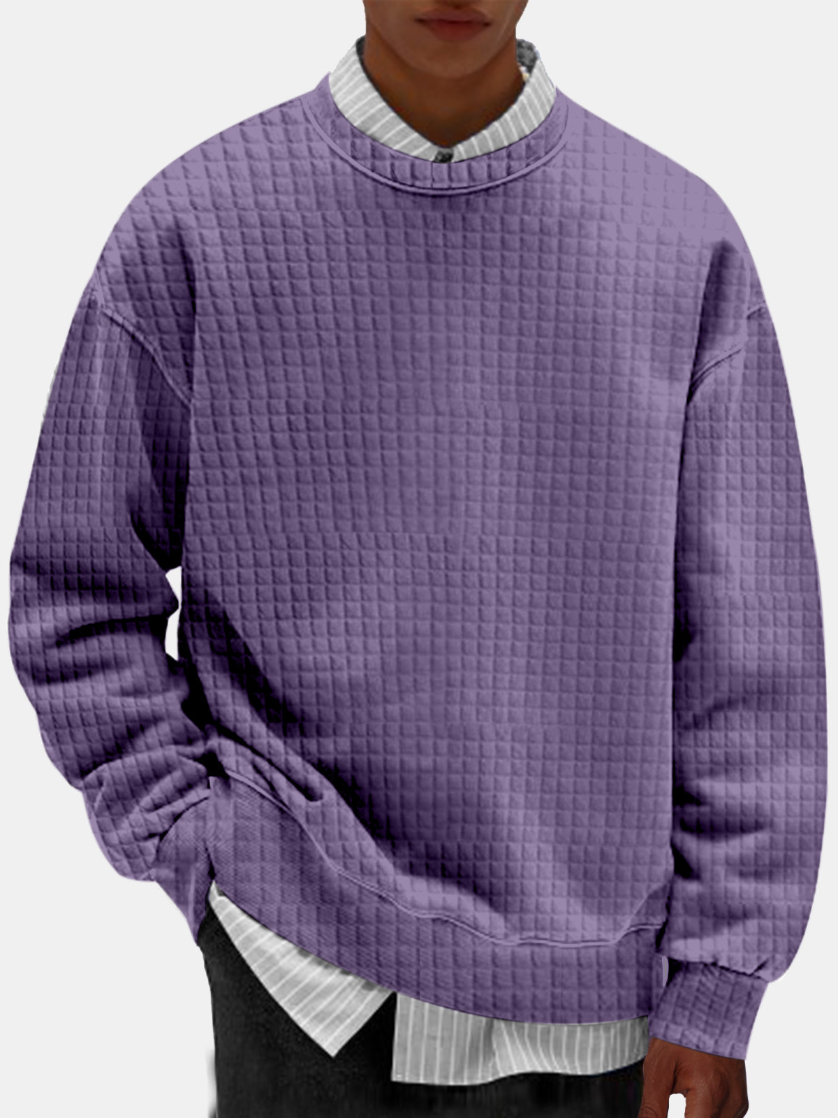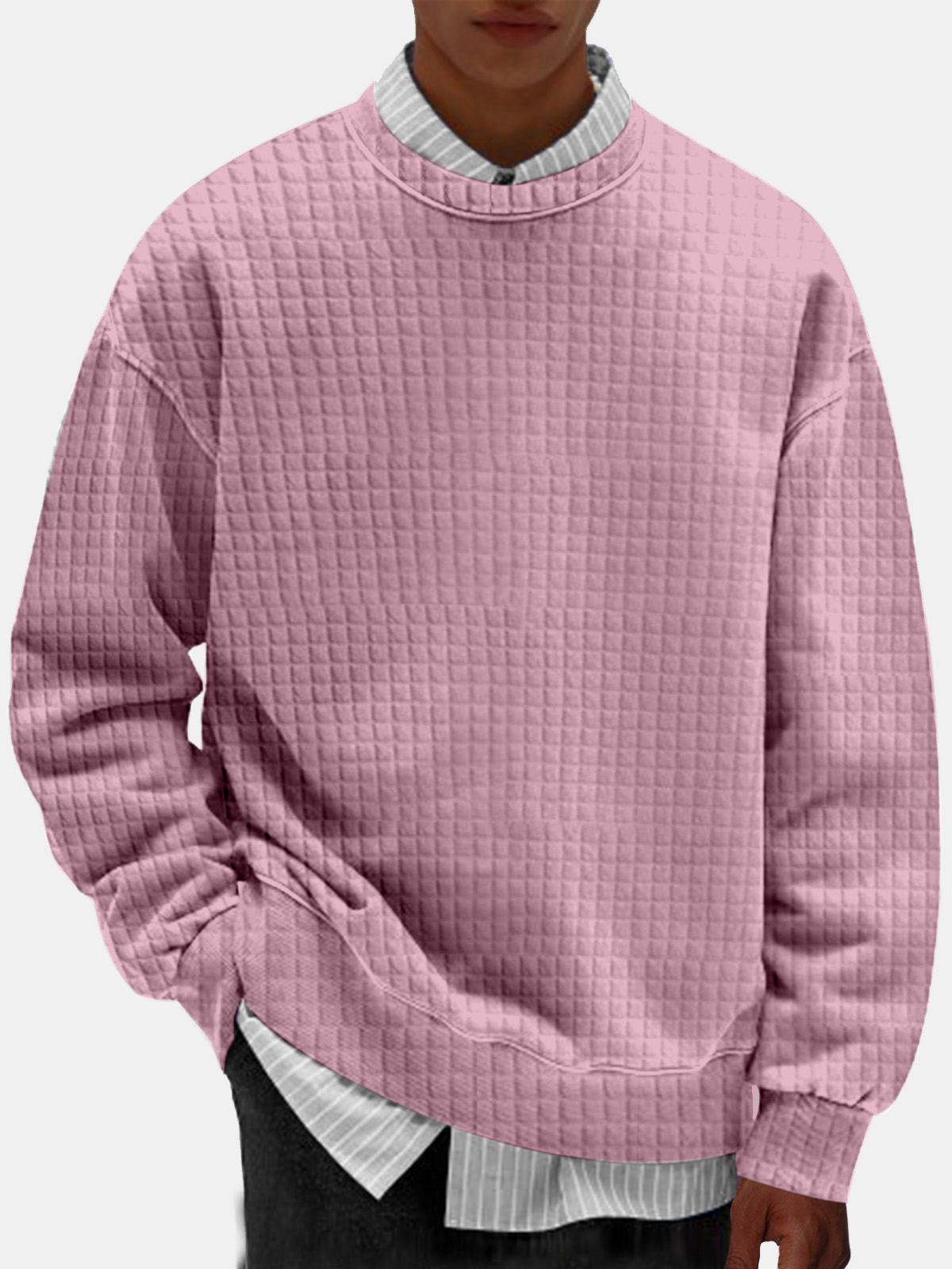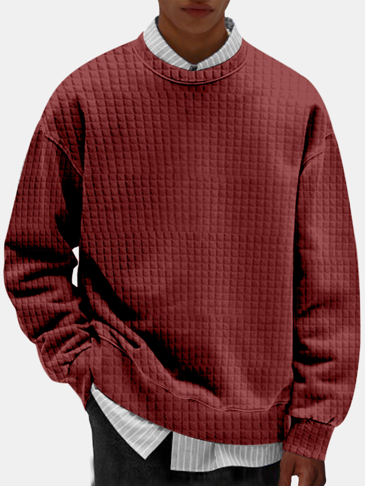 Men's Casual Solid Color Comfortable Small Square Round Neck Sweatshirt
