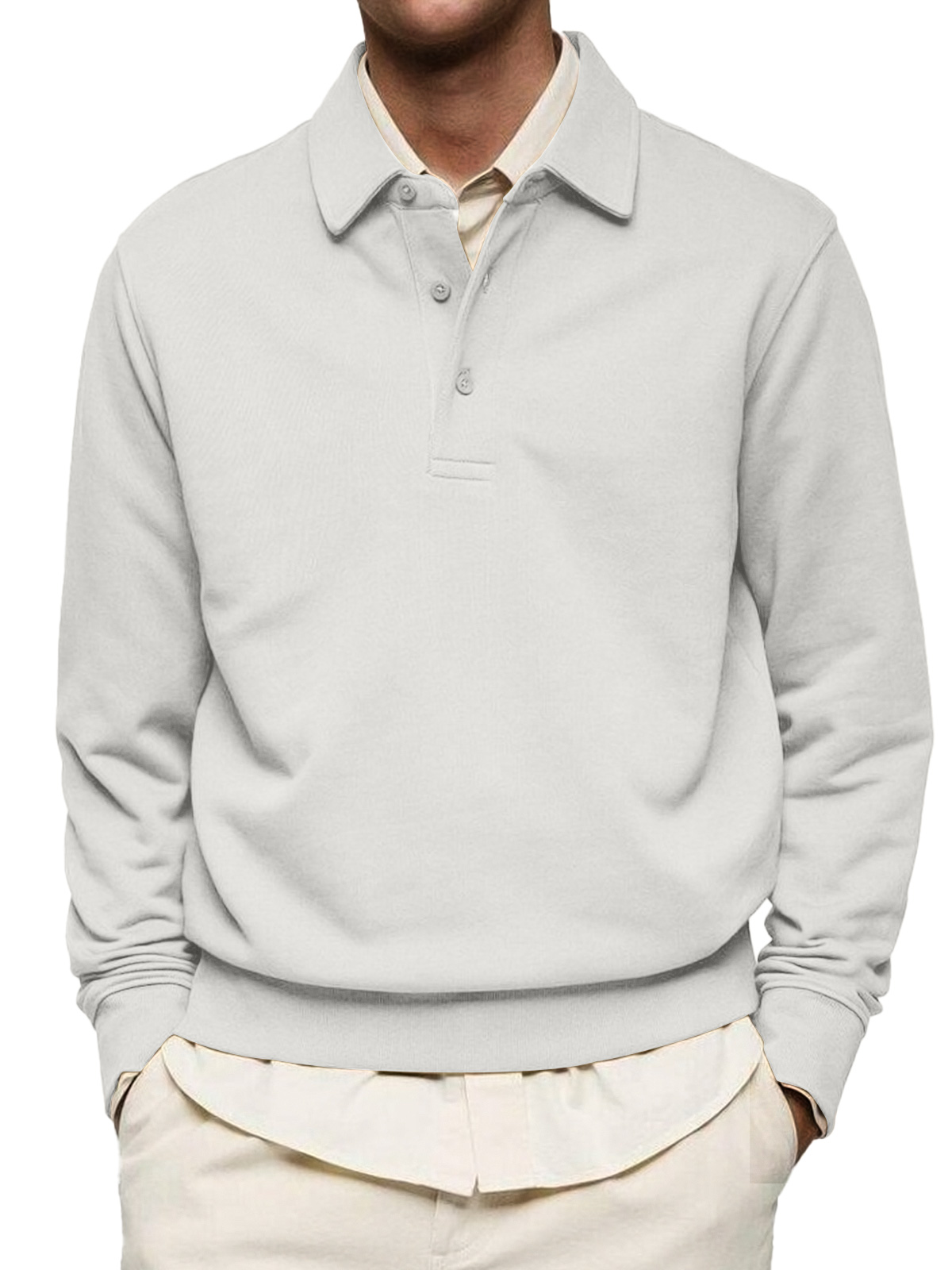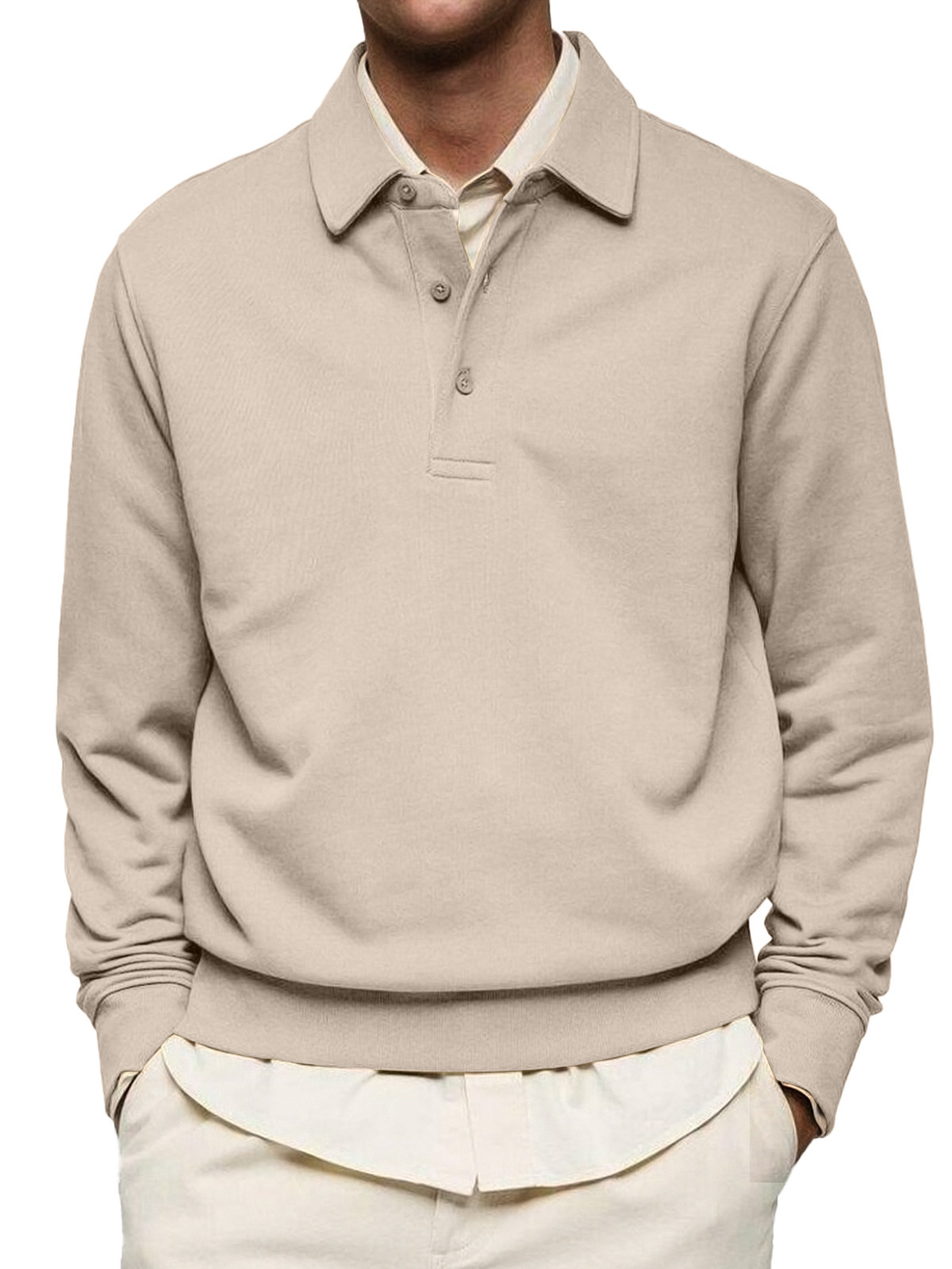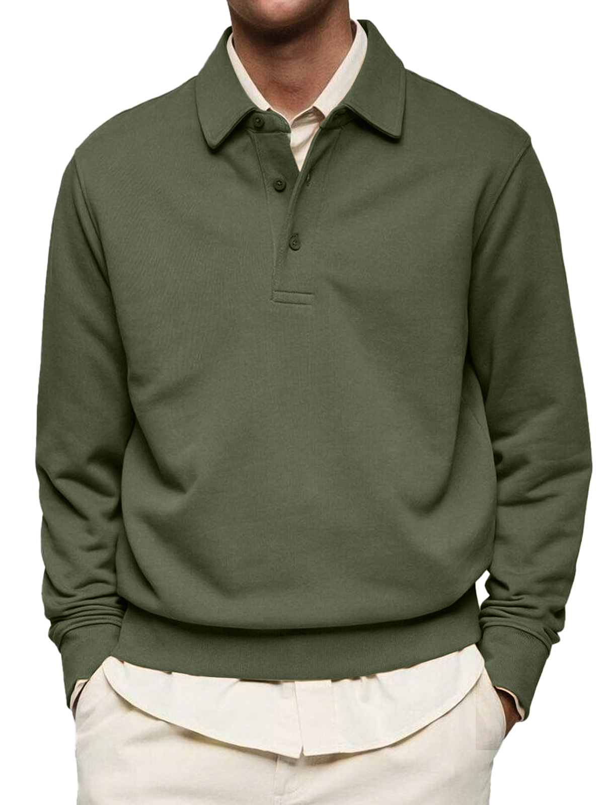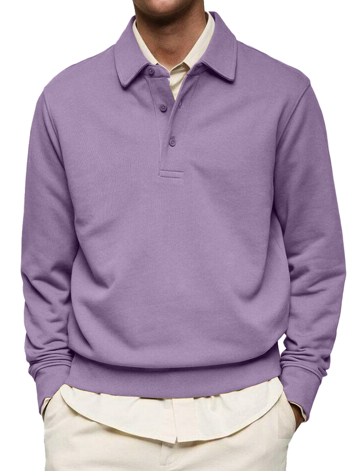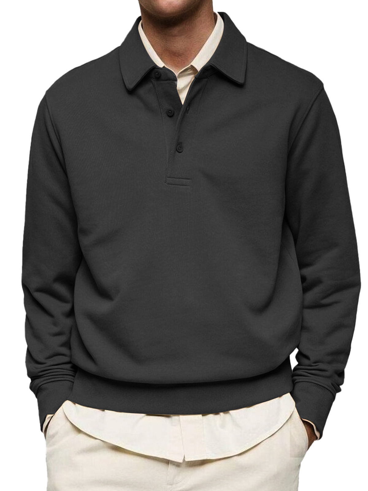 Men's Casual Solid Color Lapel Button Comfortable Polo Sweatshirt
