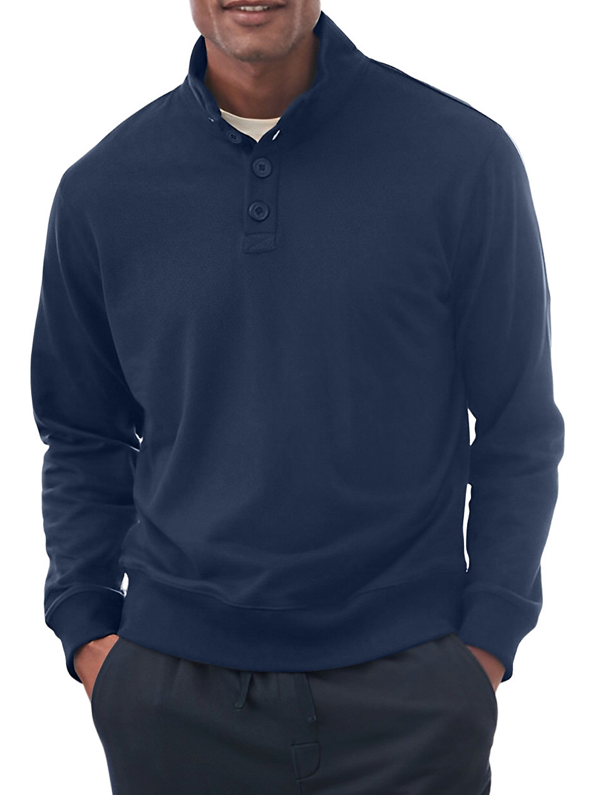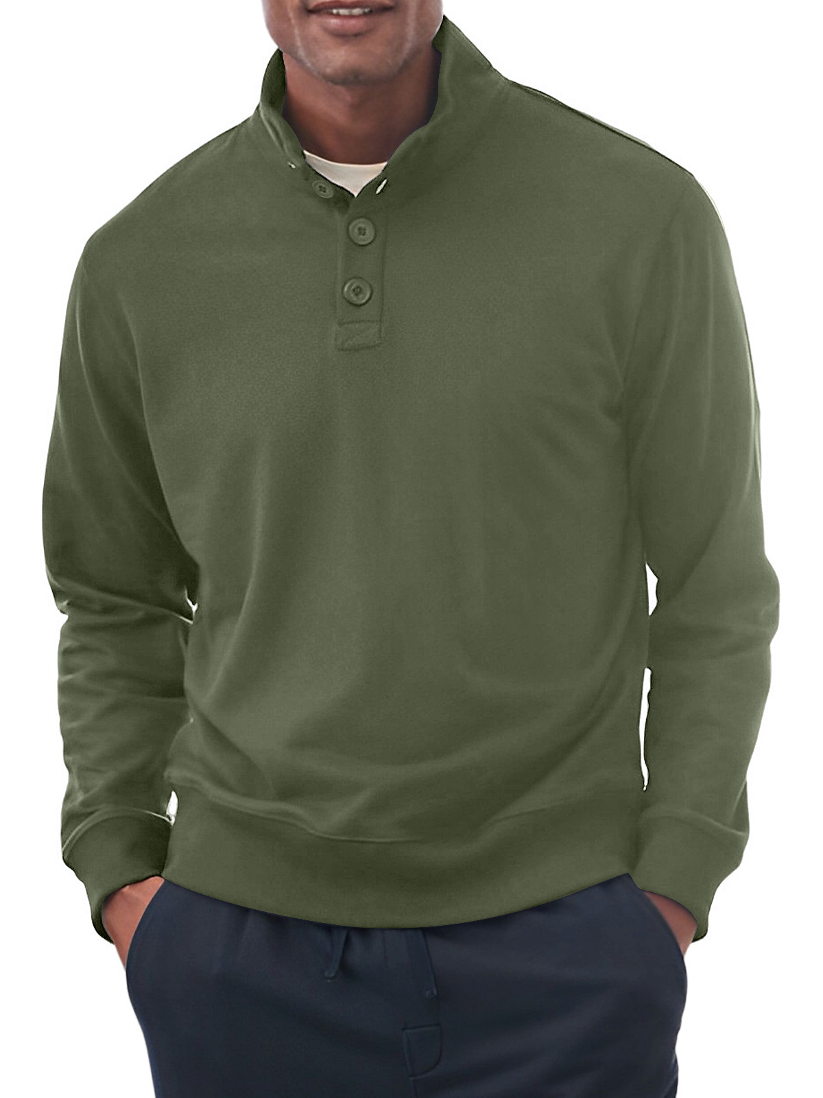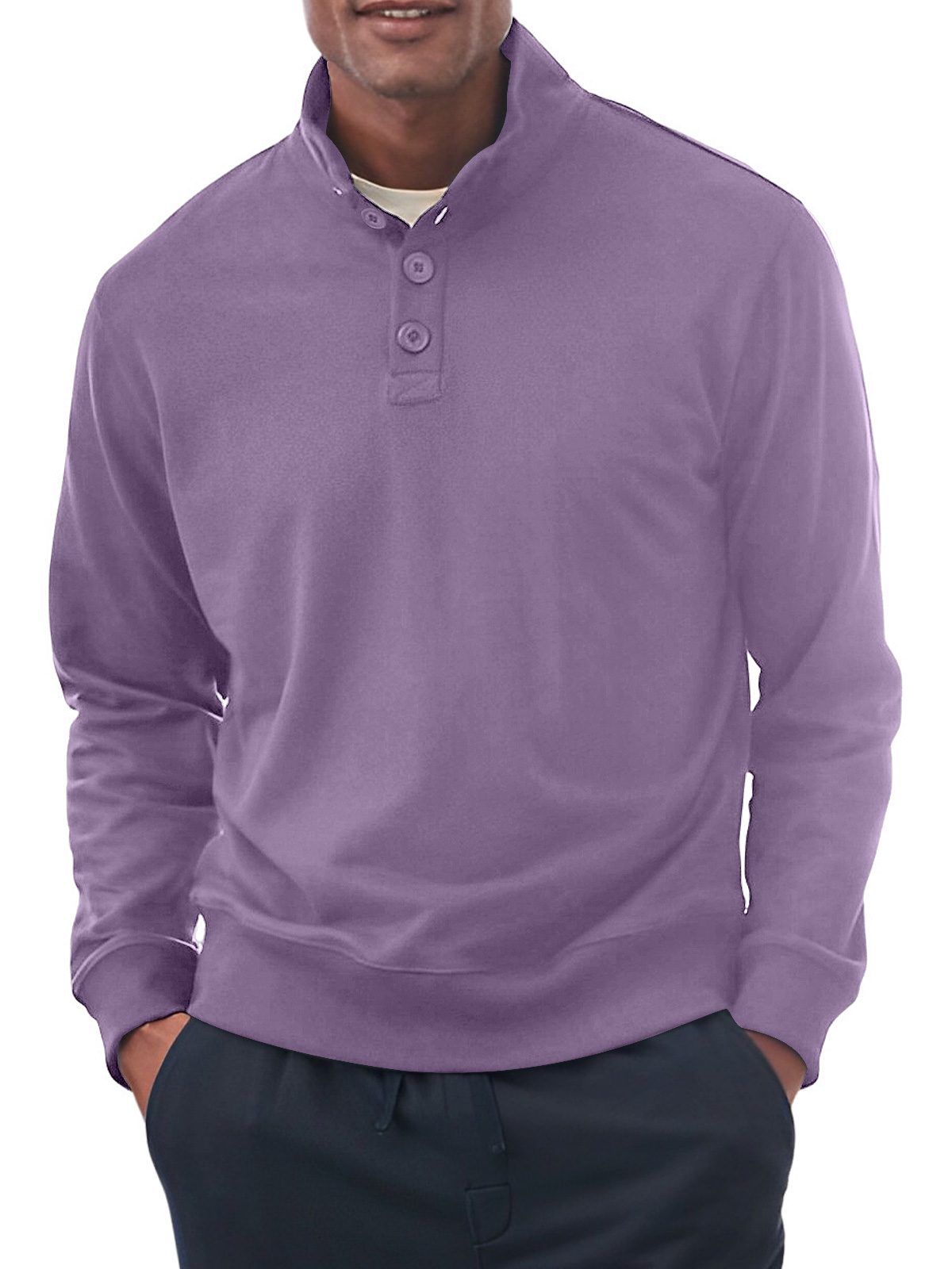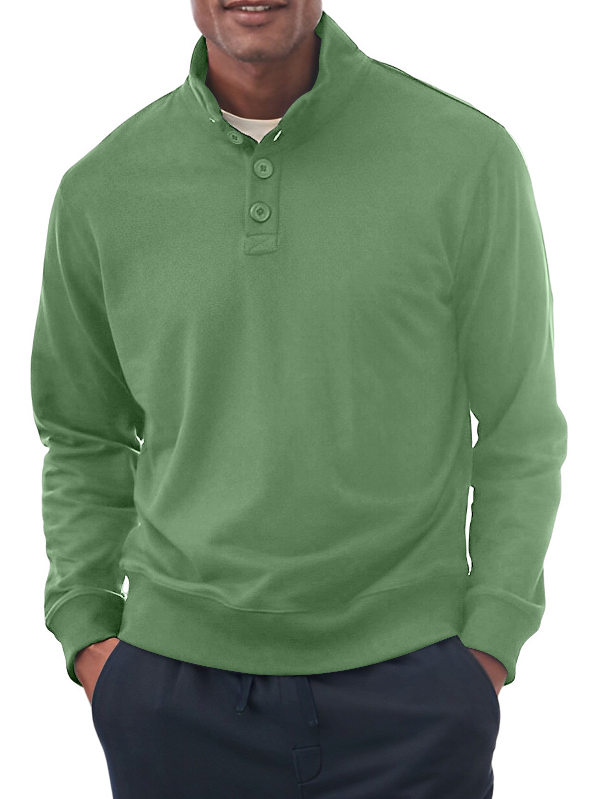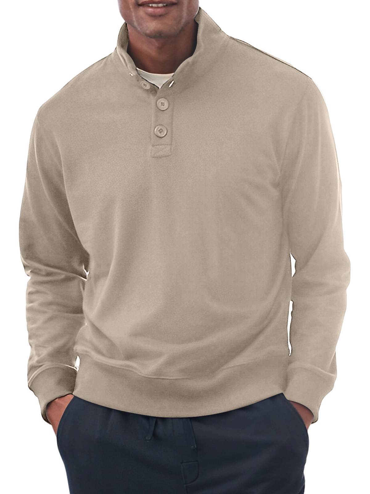 Men's Casual Stand Collar Button Solid Color Comfortable Sweatshirt