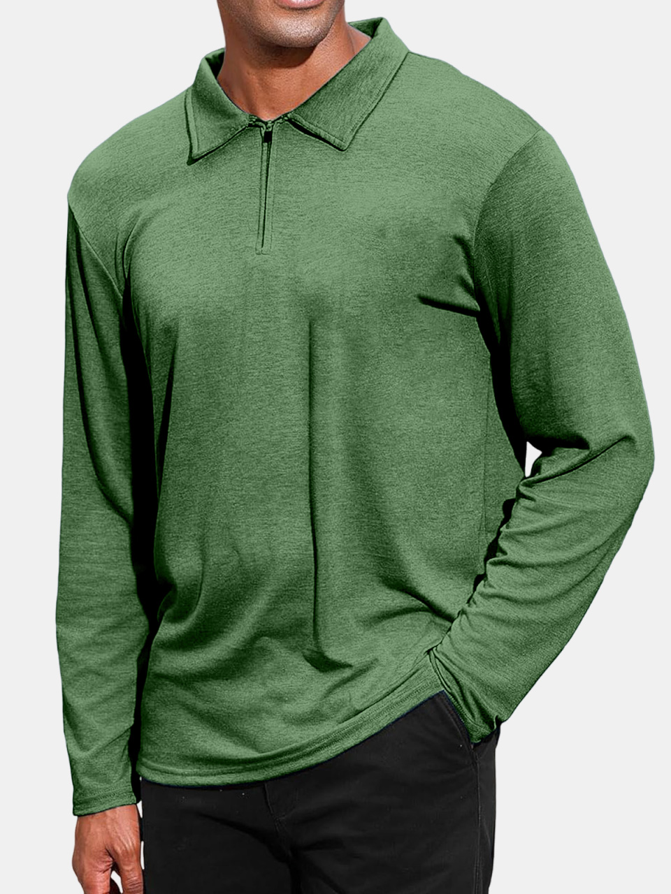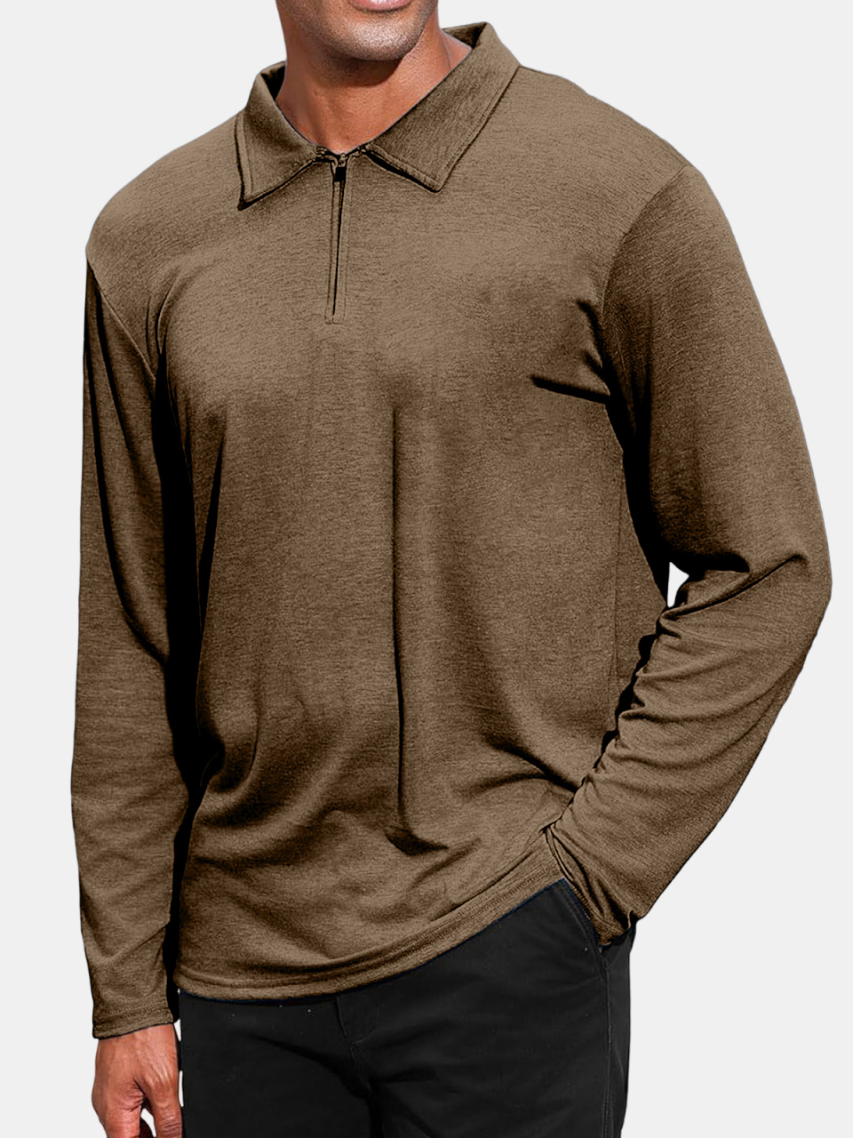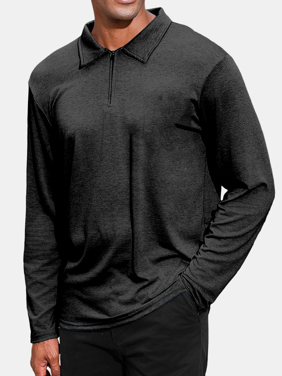 Men's Daily Fashion Solid Color Zipper Lapel Long-sleeved Polo Shirt