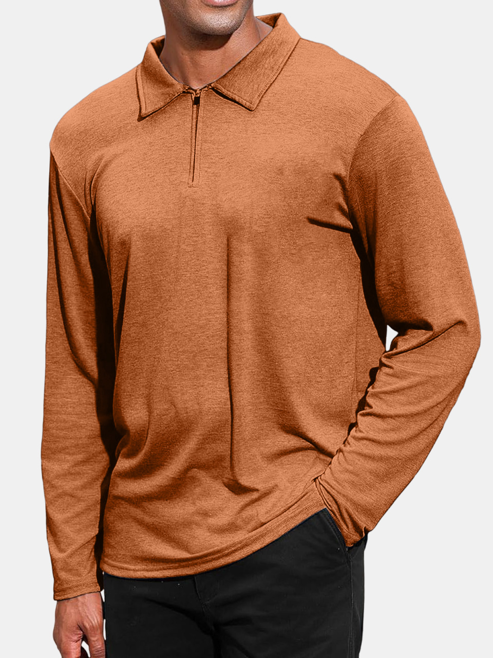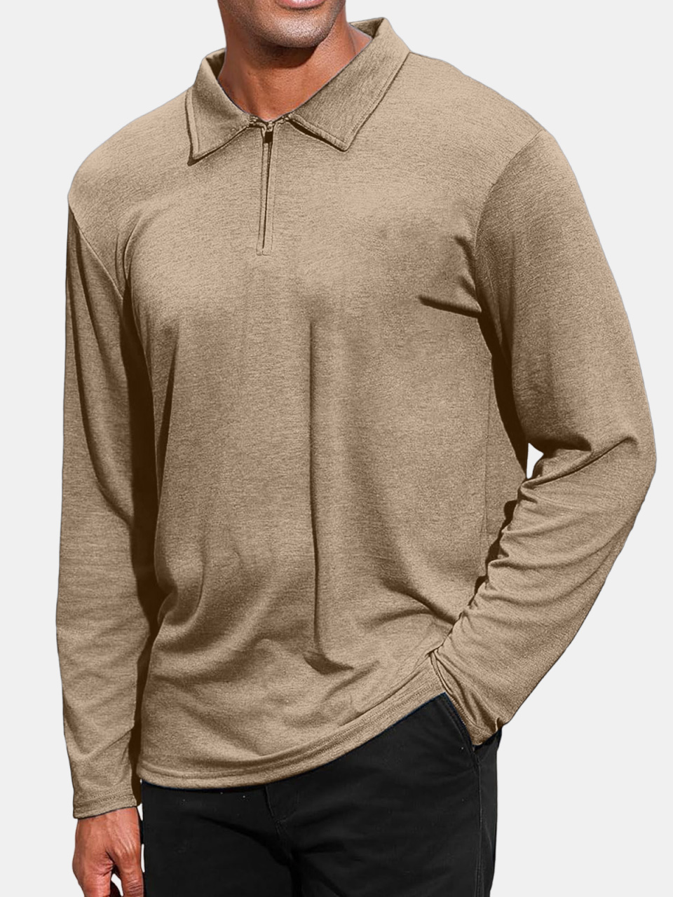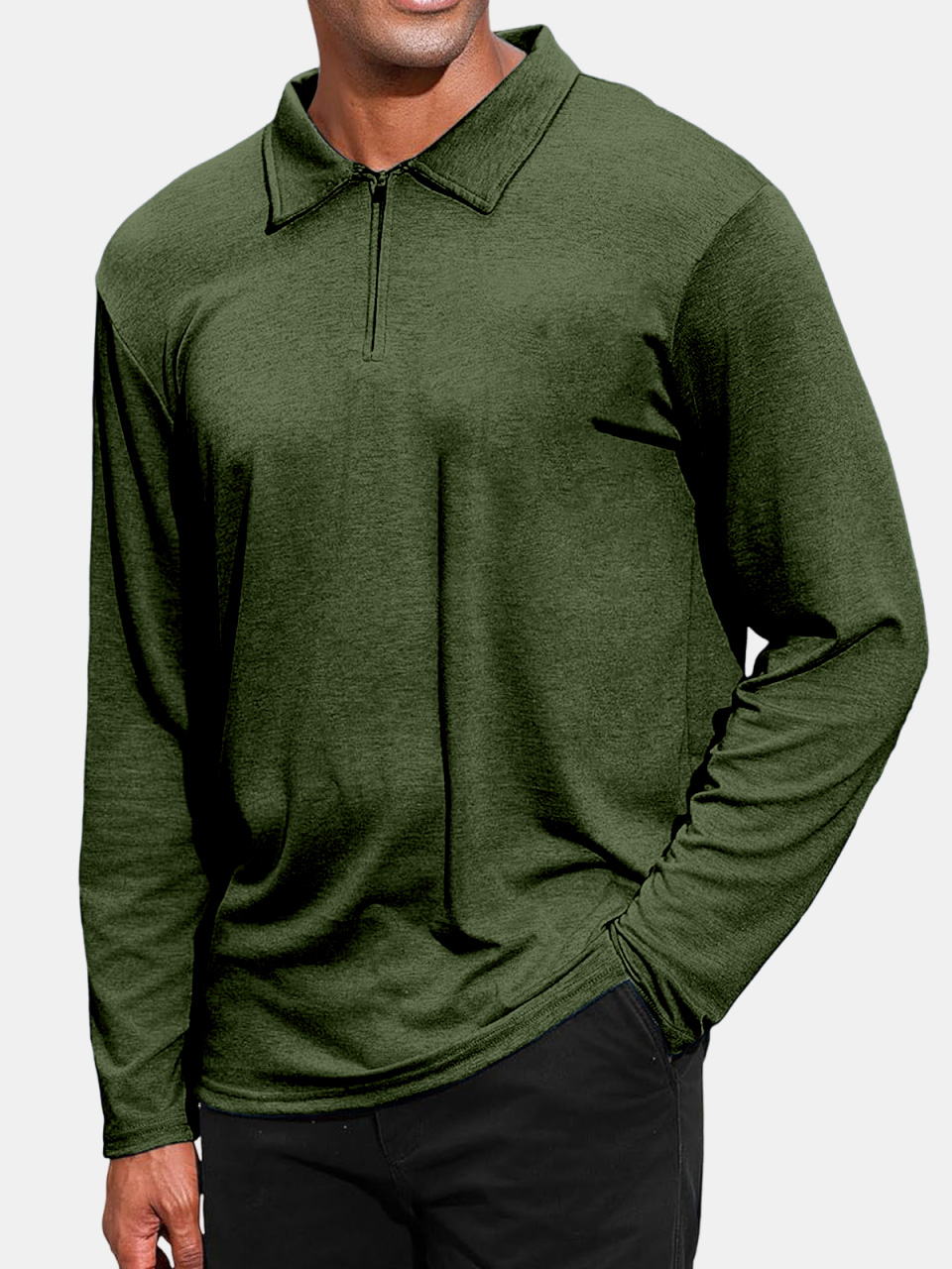 Men's Daily Fashion Solid Color Zipper Lapel Long-sleeved Polo Shirt