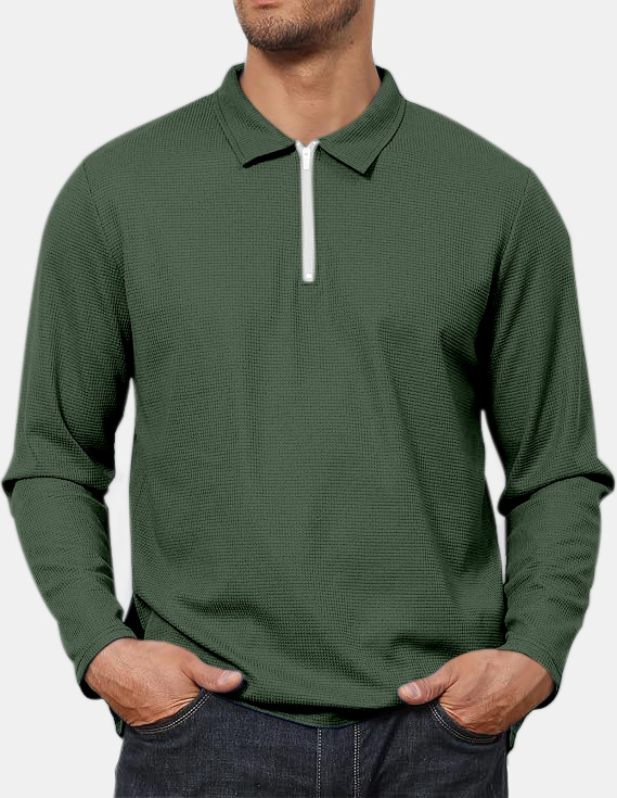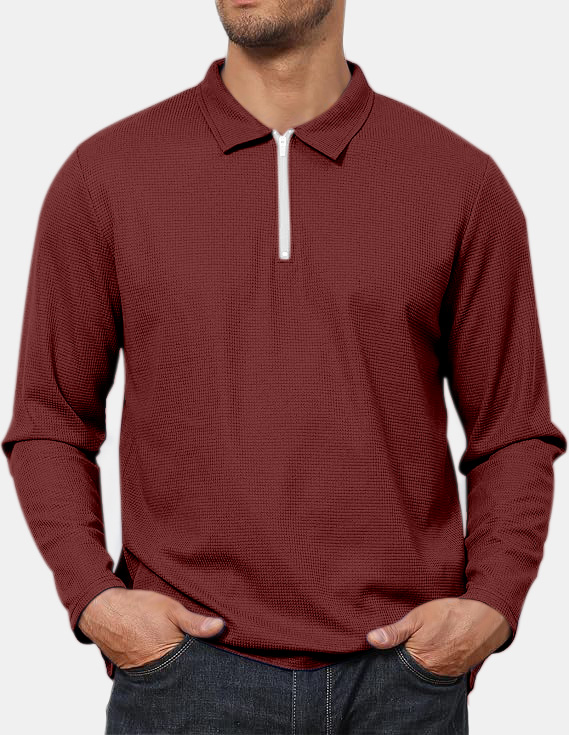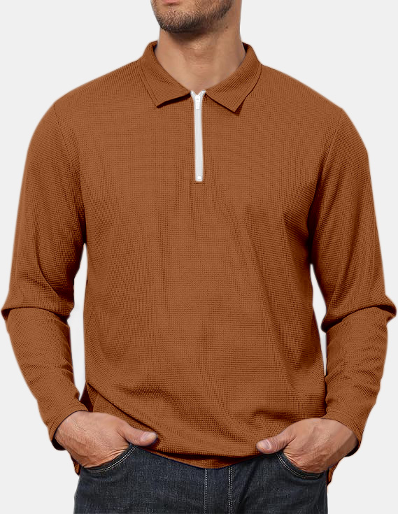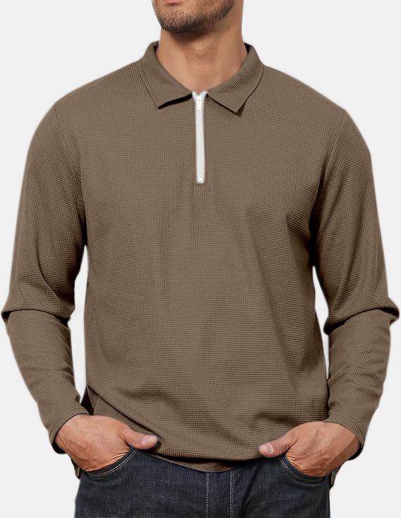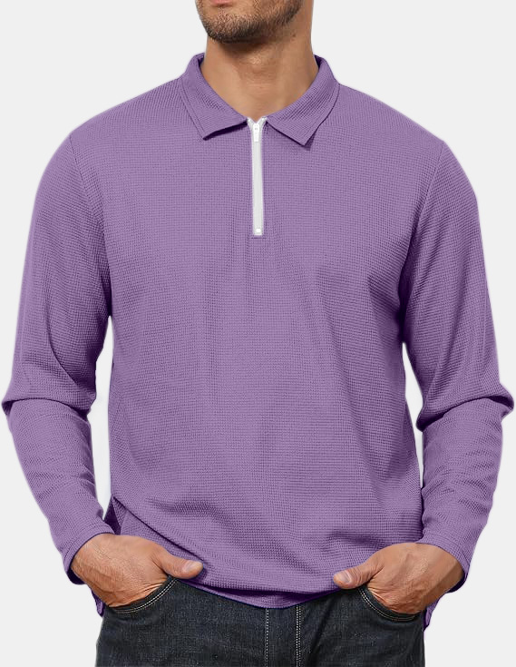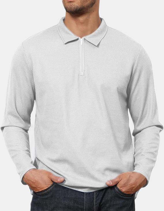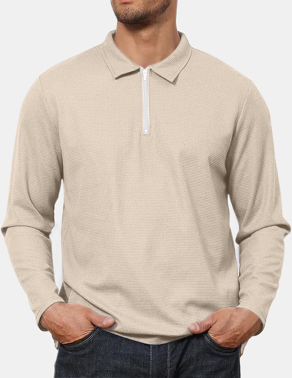 Men's Everyday Casual Comfortable Waffle Long Sleeve Zipper POLO Shirt