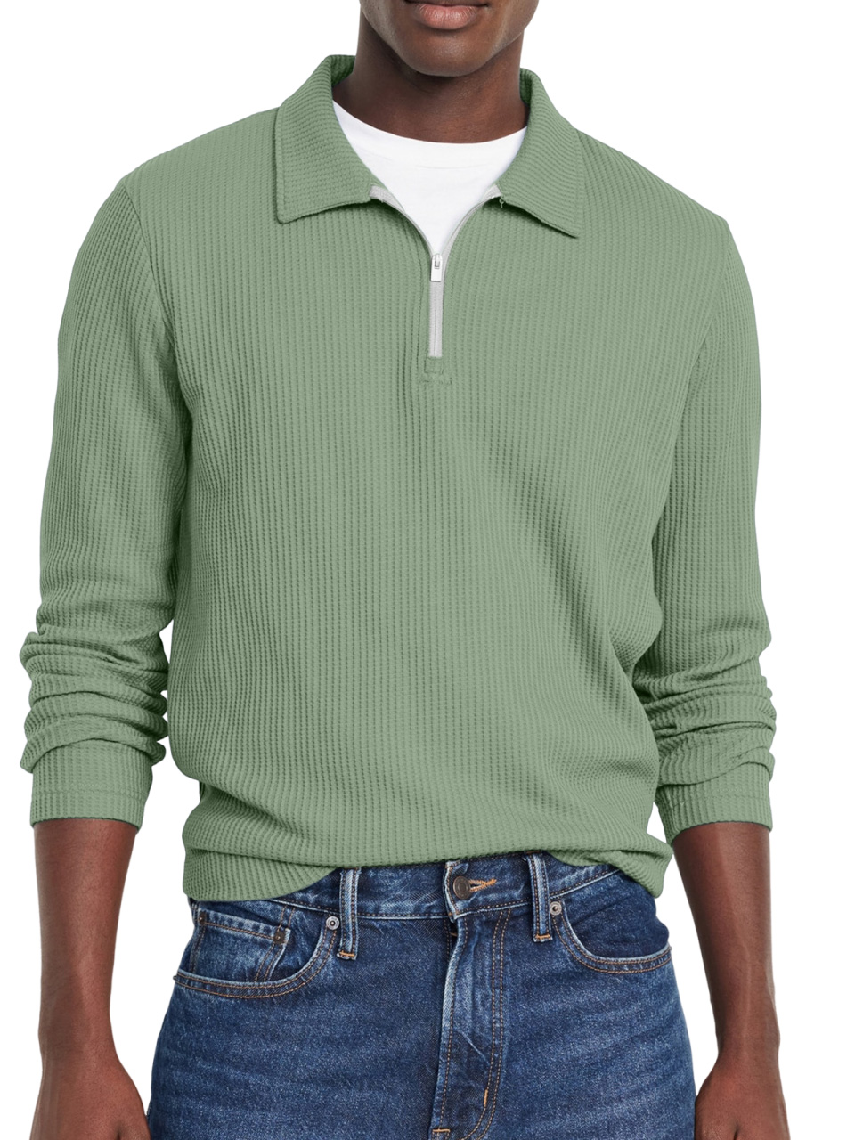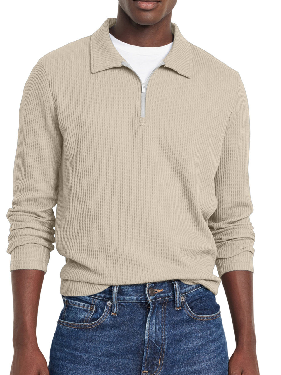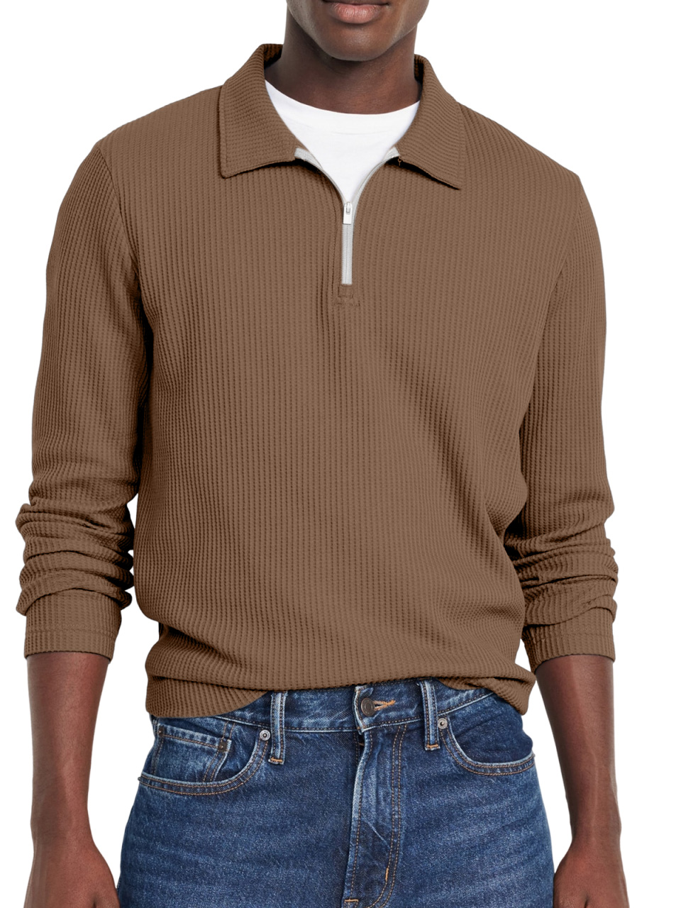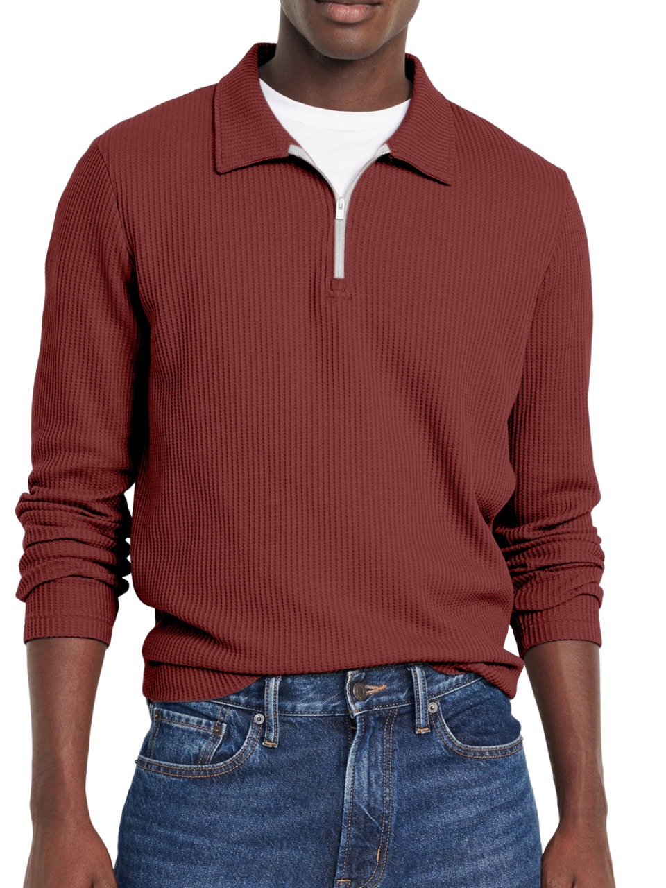 Men's Everyday Solid Color Waffle Lapel Zipper Polo Shirt