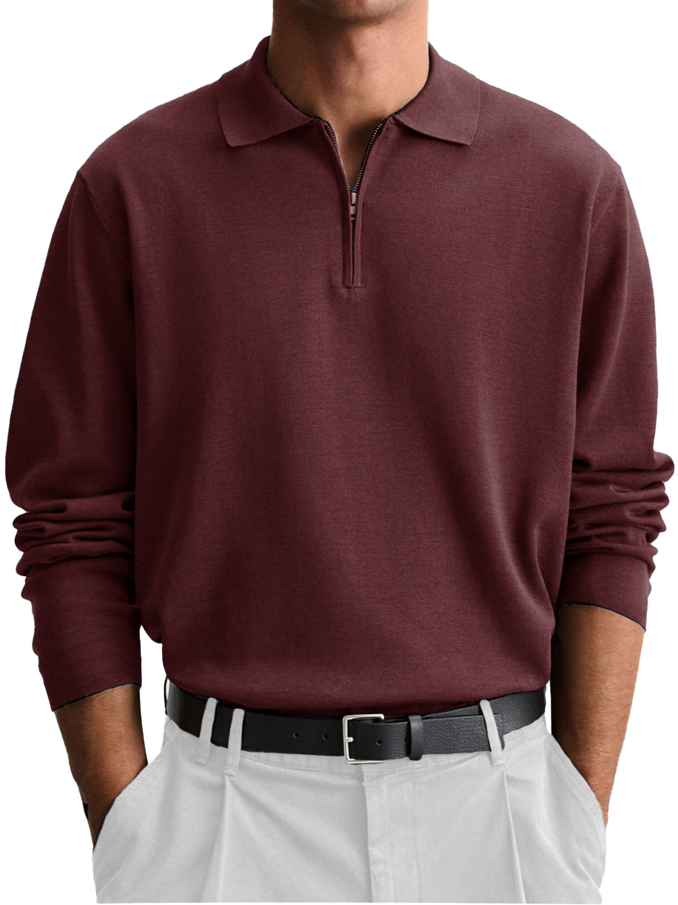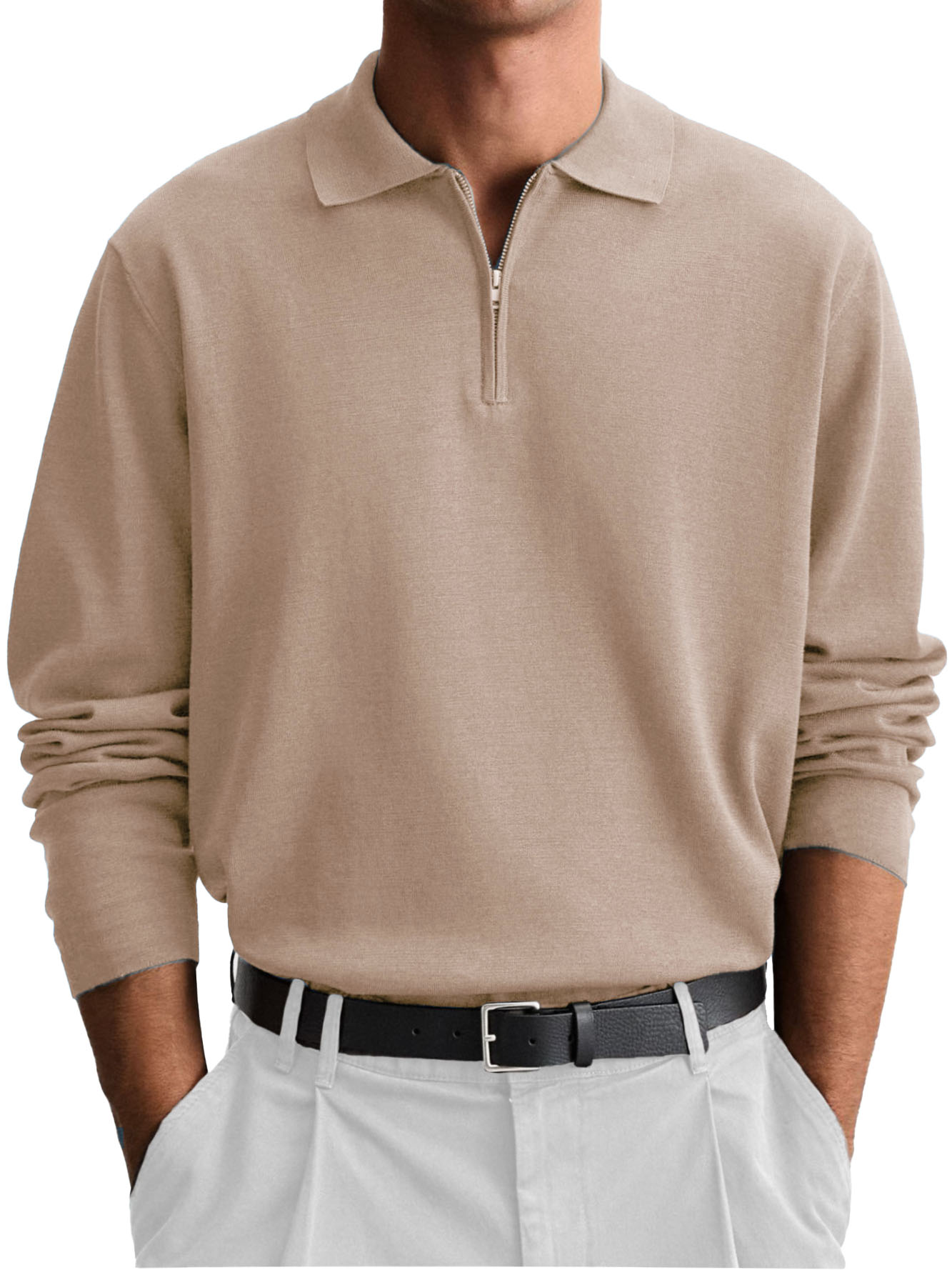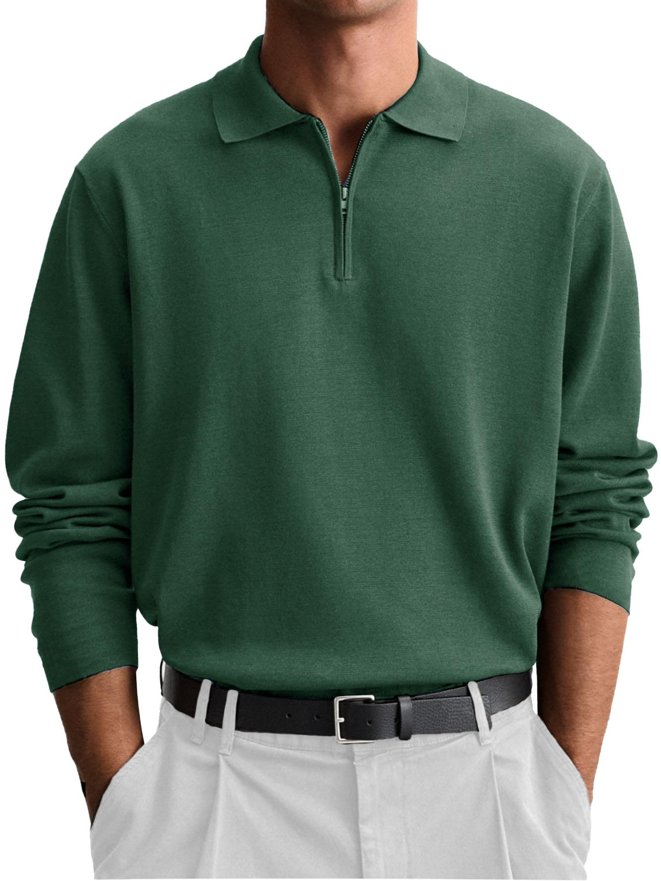 Men's Fashion Casual Lapel Zipper Long Sleeve Polo Shirt
