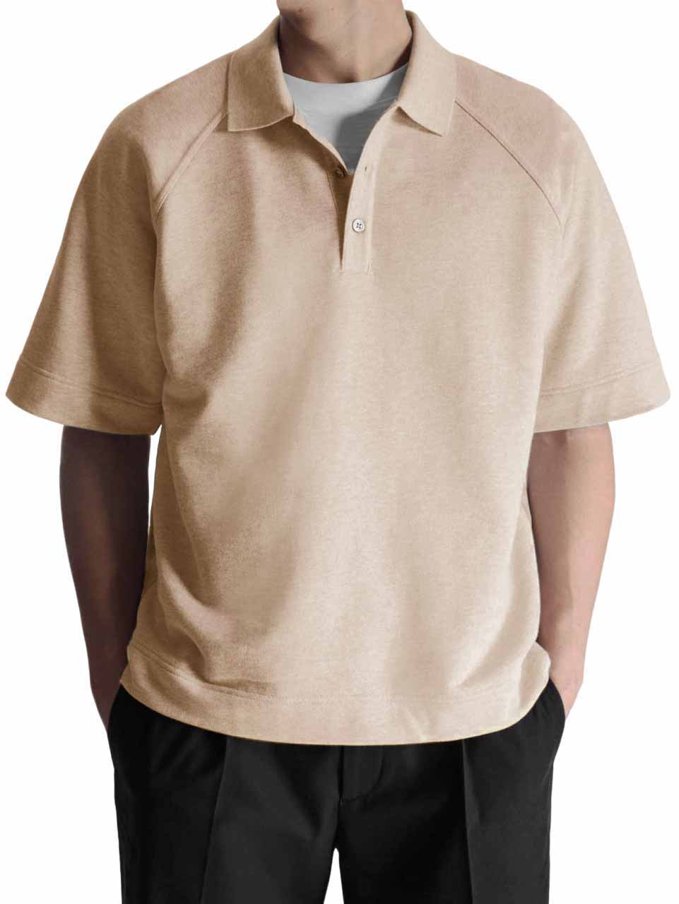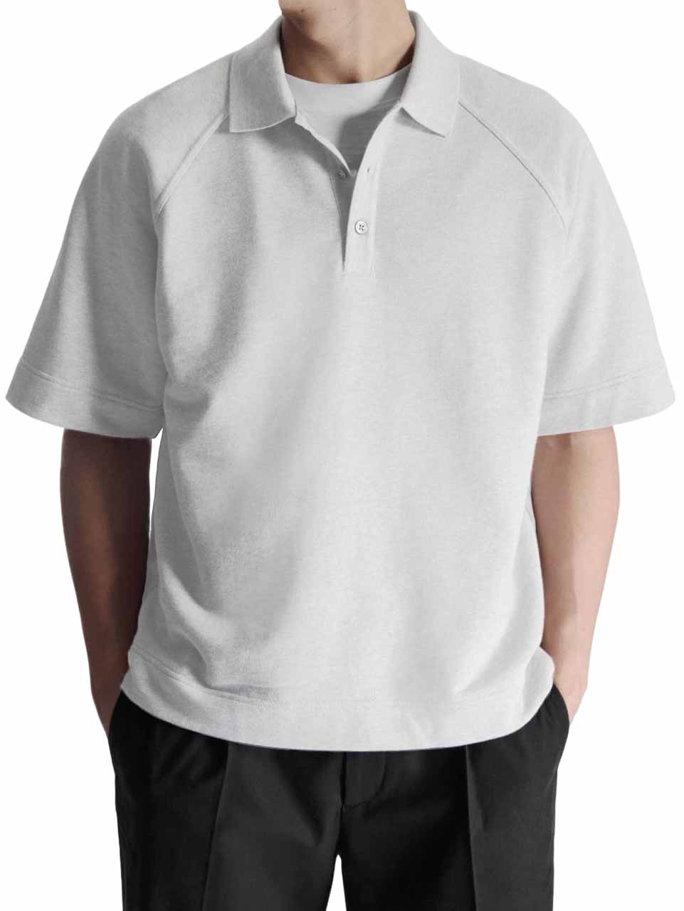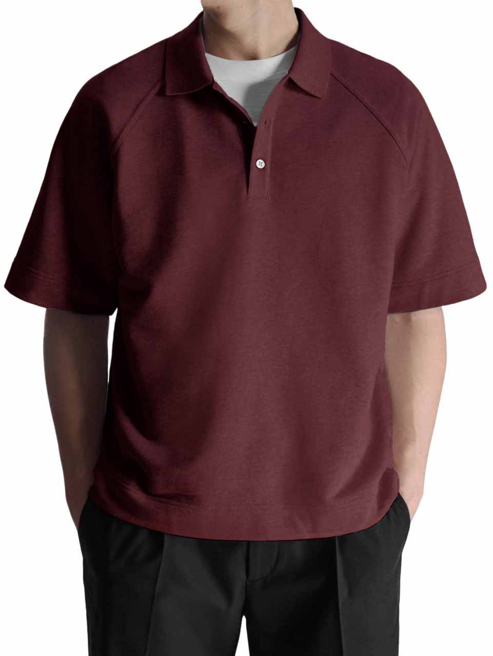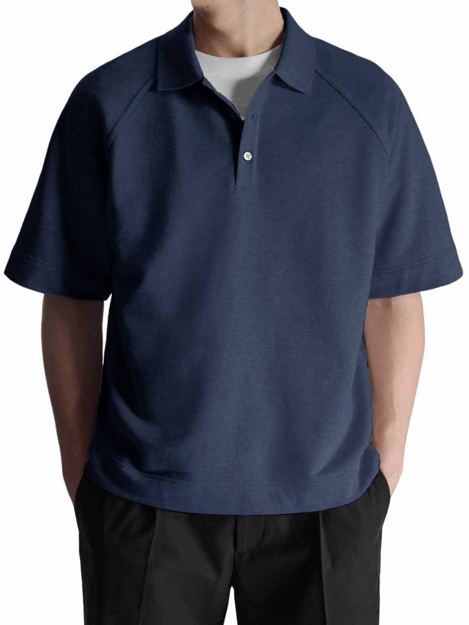 Men's Fashion Pitted Fabric Zipper Short Sleeve Polo Shirt