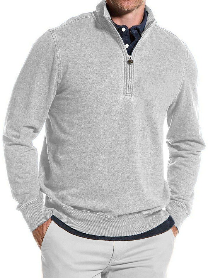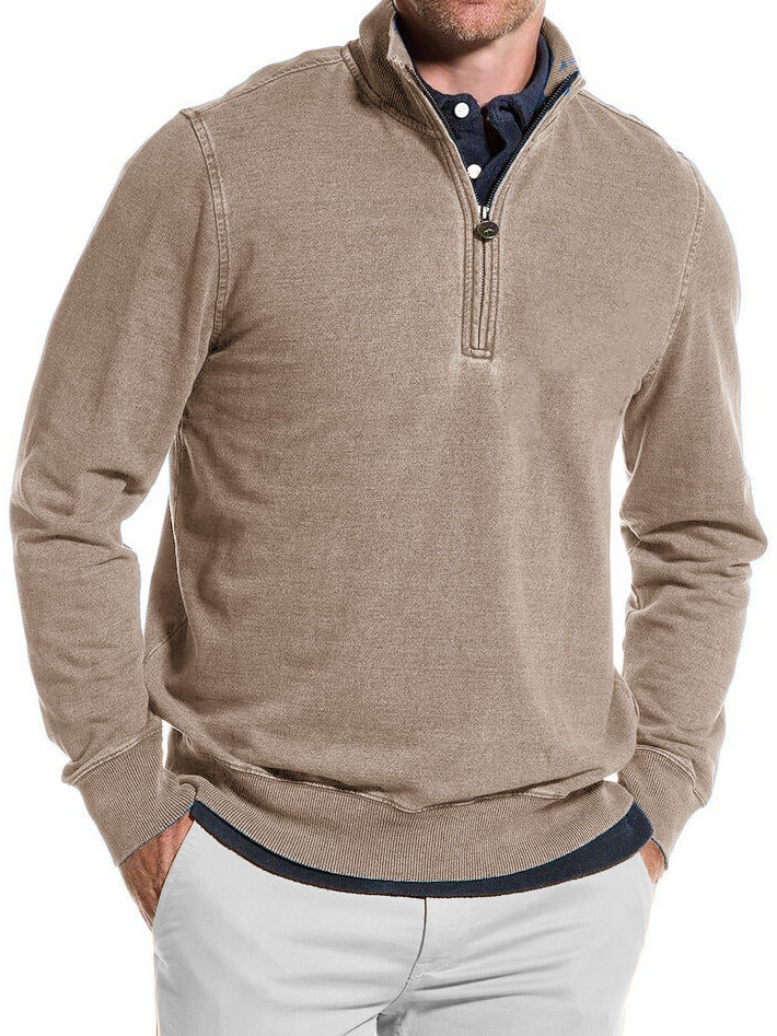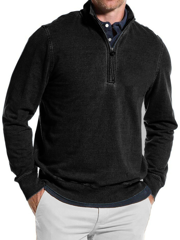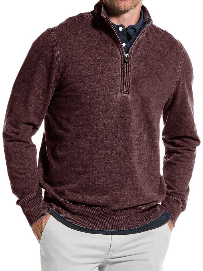Men's Fashion Retro Distressed Stand Collar Long Sleeve Zipper Sweatshirt