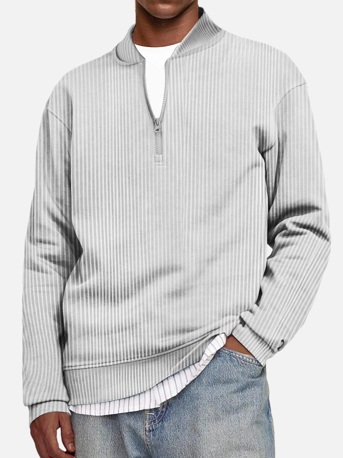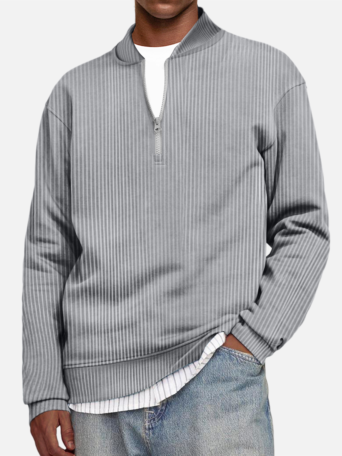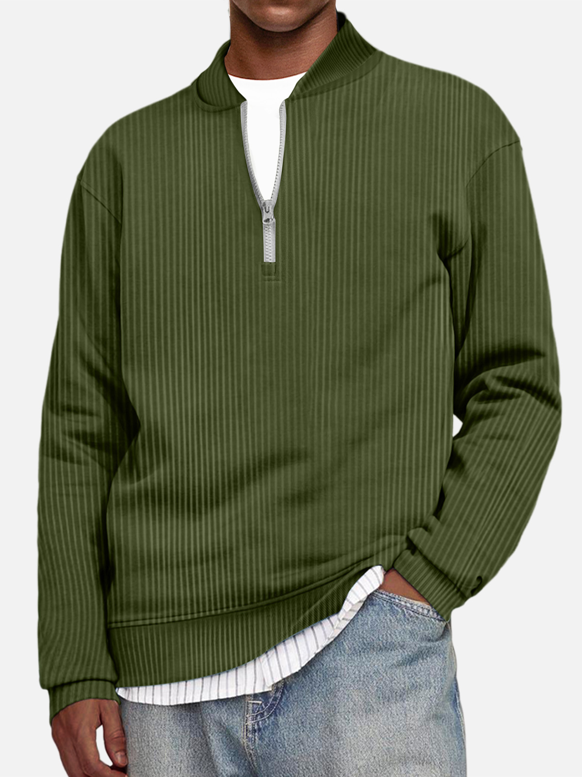 Men's Fashionable Casual Baseball Collar Vertical Stripe Textured Zipper Solid Color Comfortable Sweatshirt