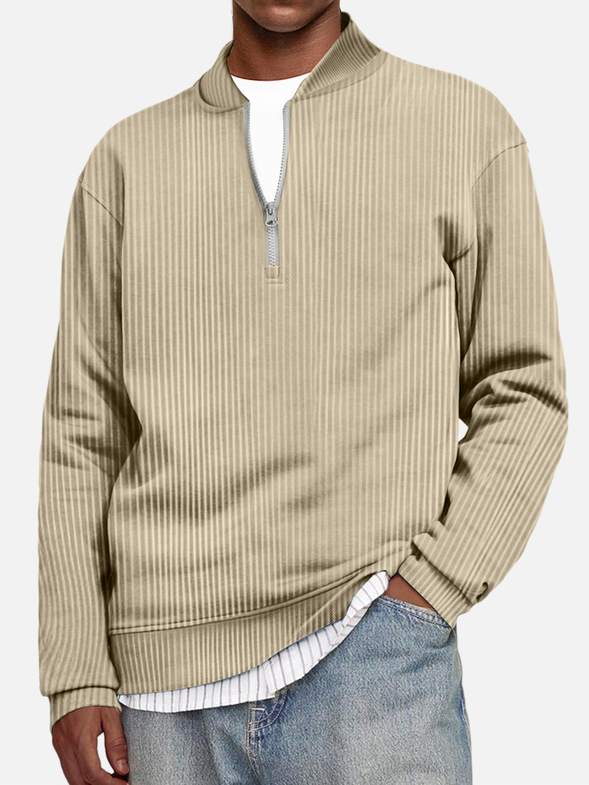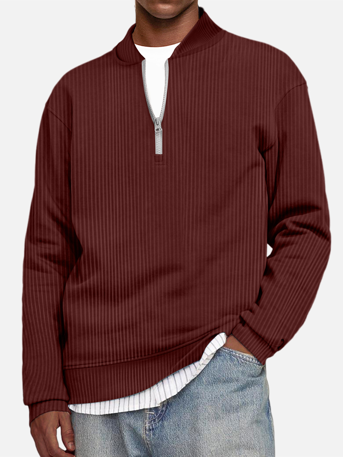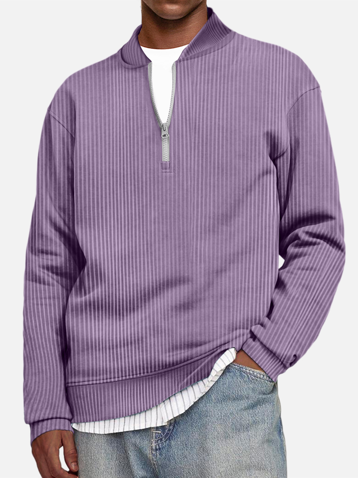 Men's Fashionable Casual Baseball Collar Vertical Stripe Textured Zipper Solid Color Comfortable Sweatshirt