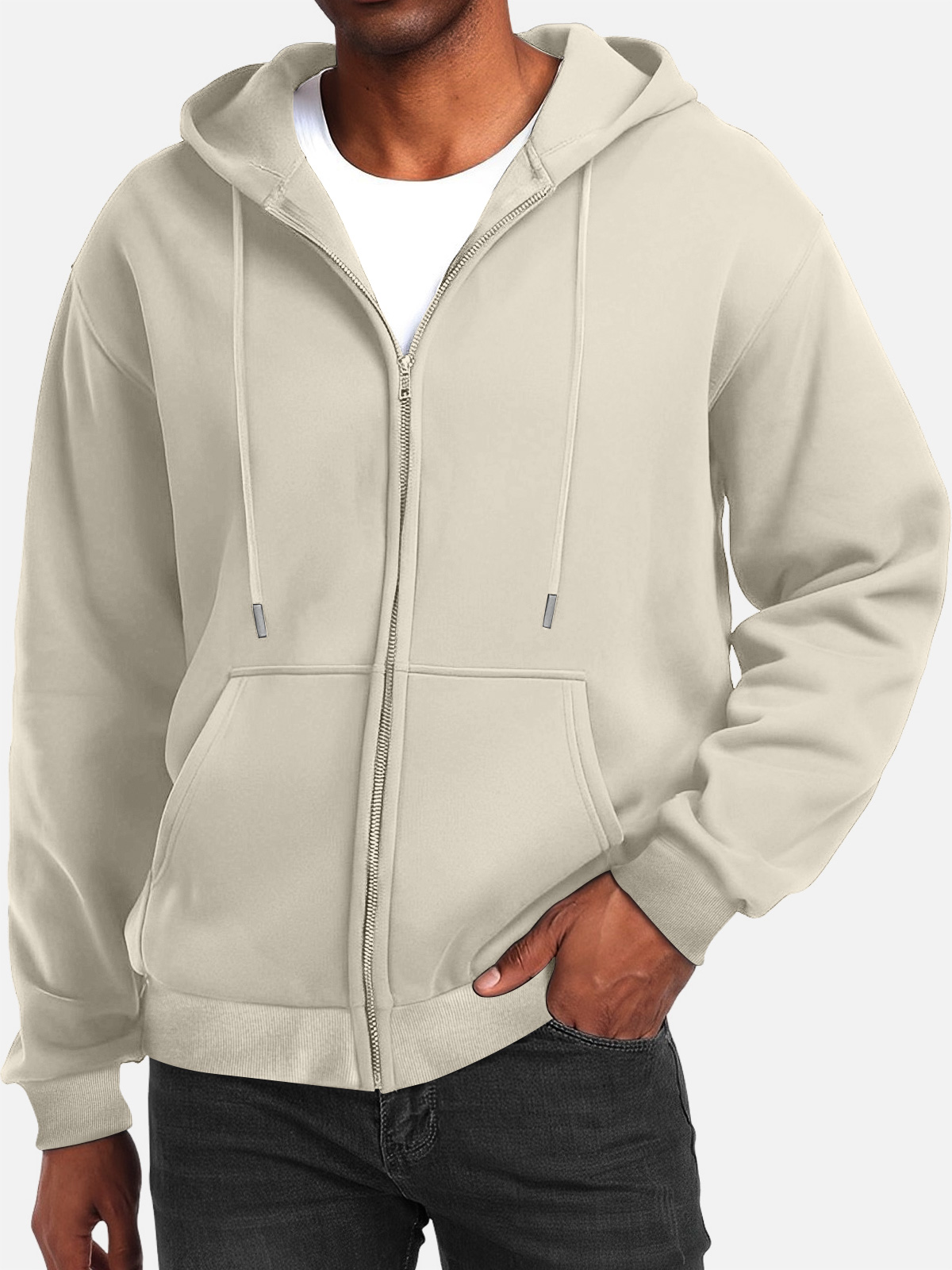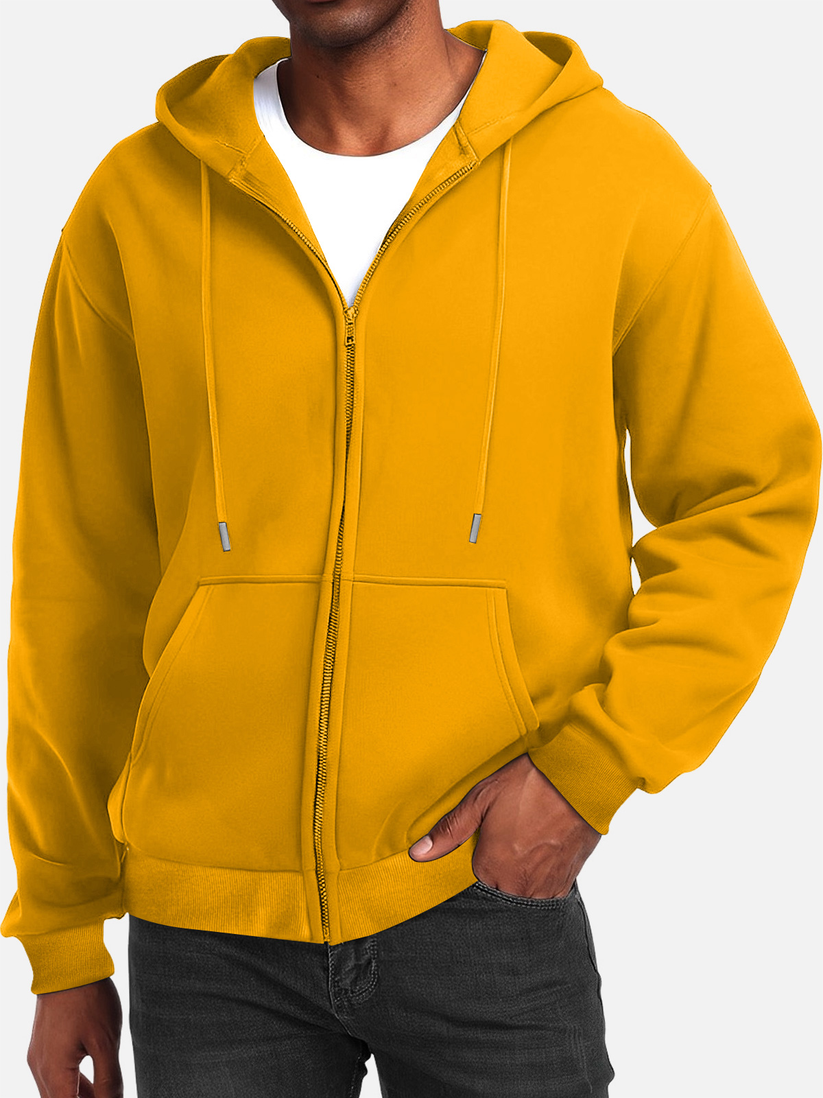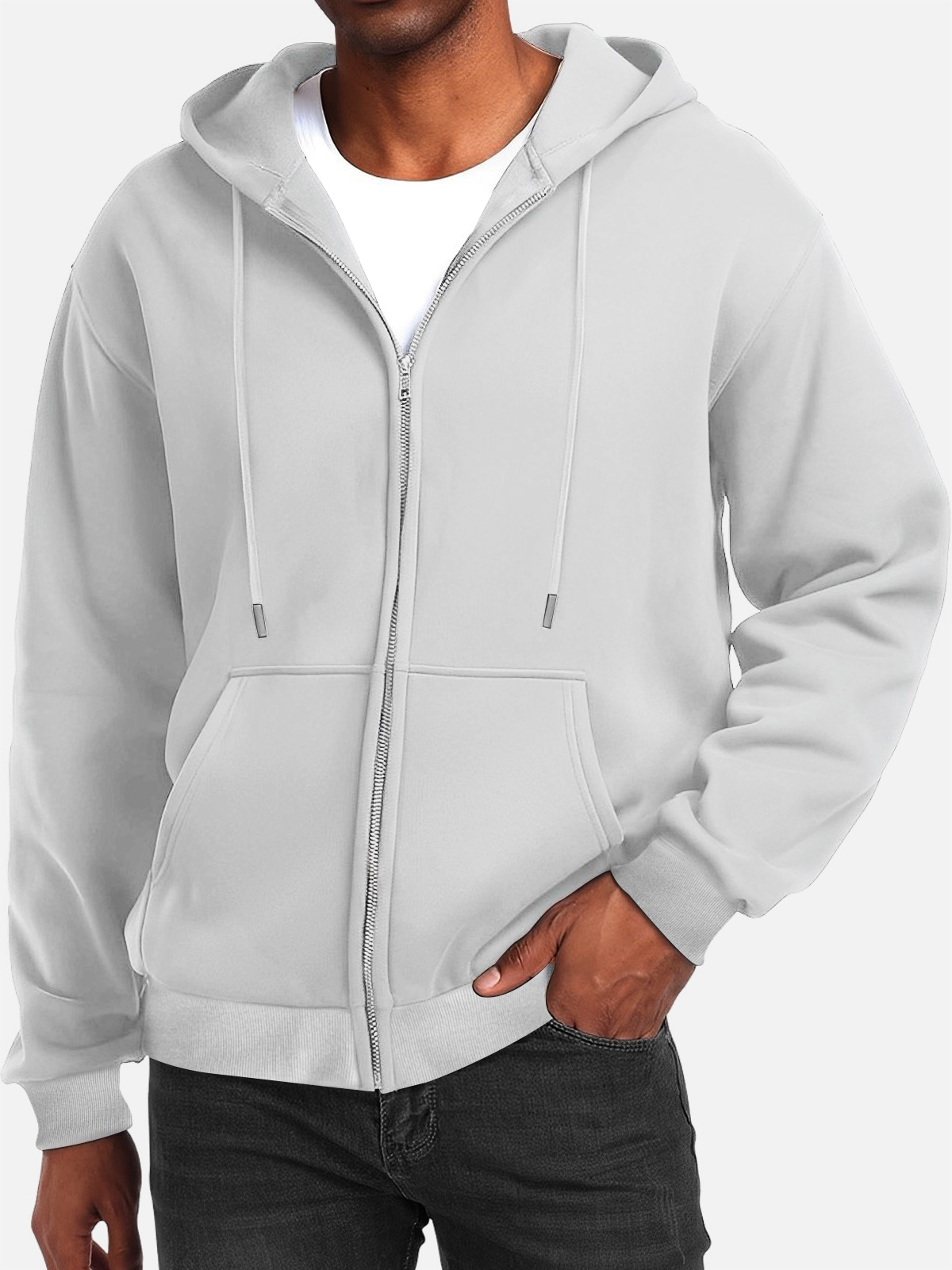 Men's Fashionable Hooded Zipper Casual Solid Color Pocket Sweatshirt Jacket