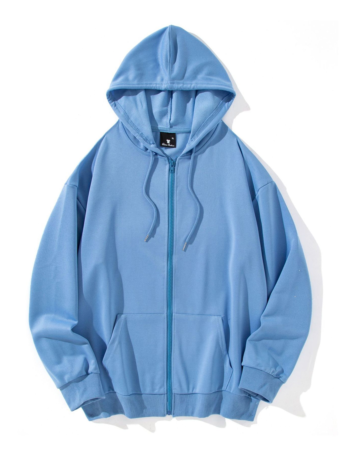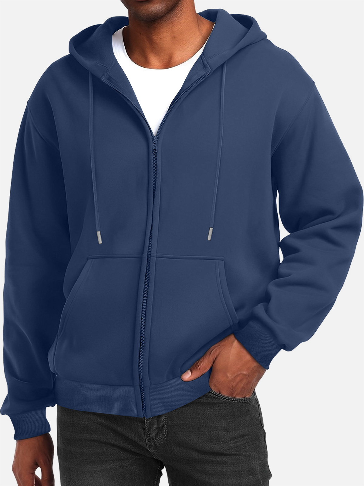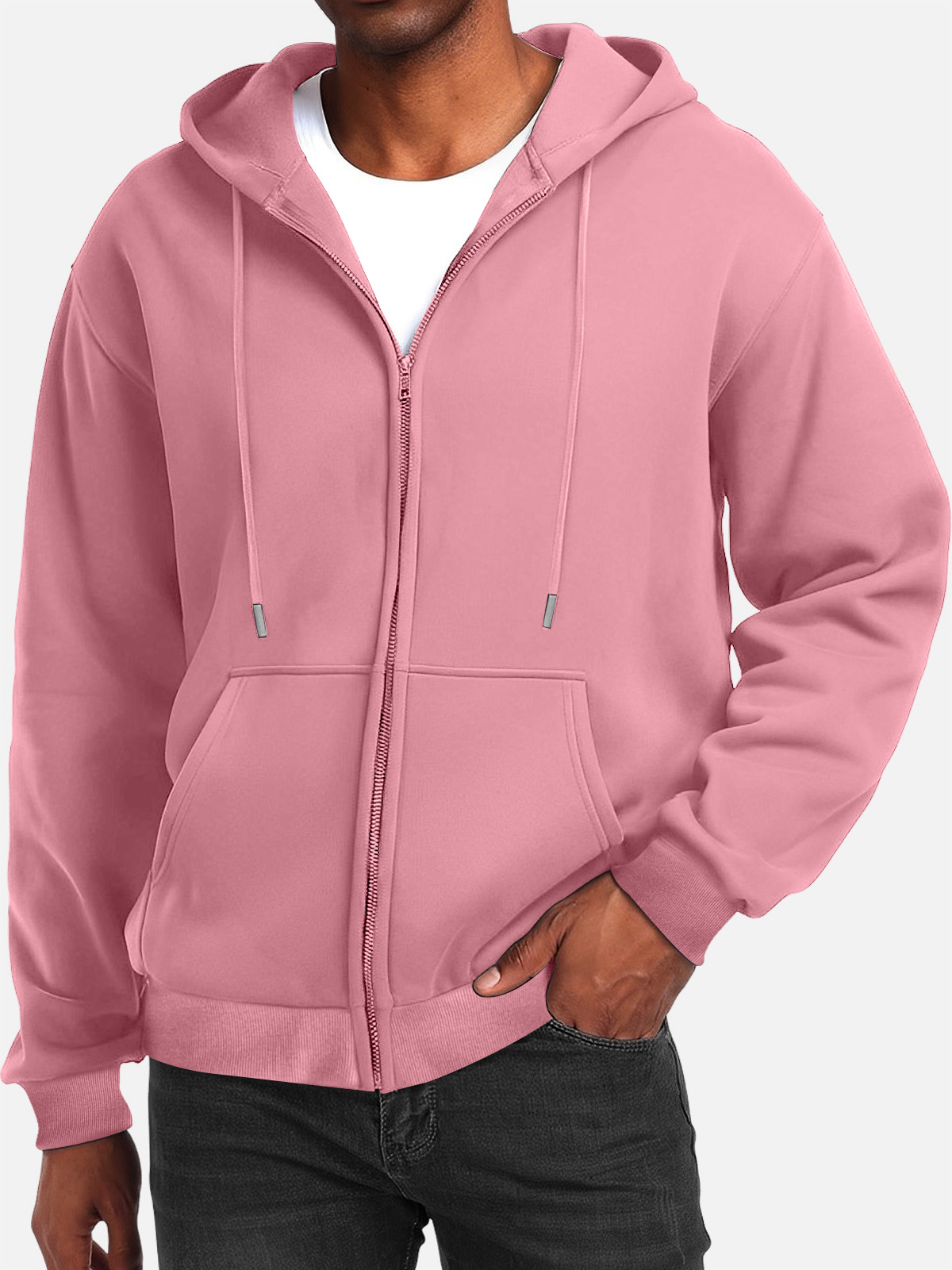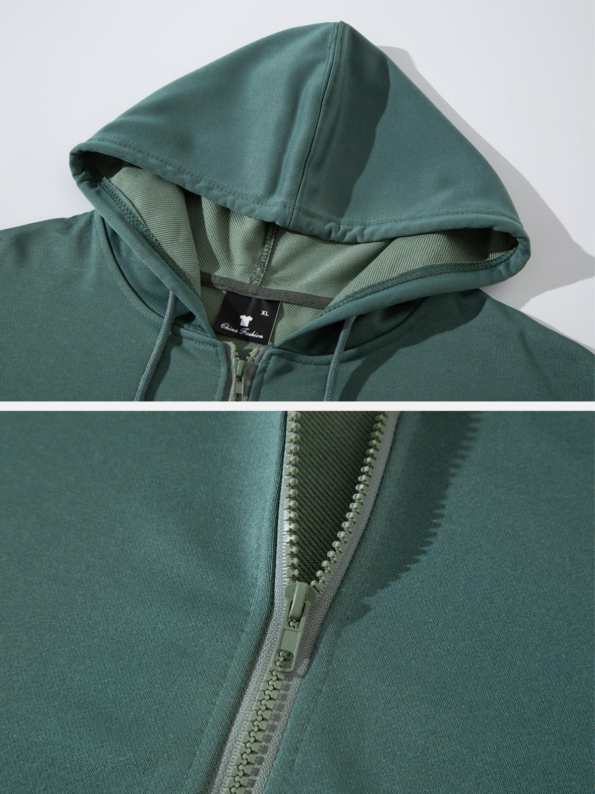 Men's Fashionable Hooded Zipper Casual Solid Color Pocket Sweatshirt Jacket