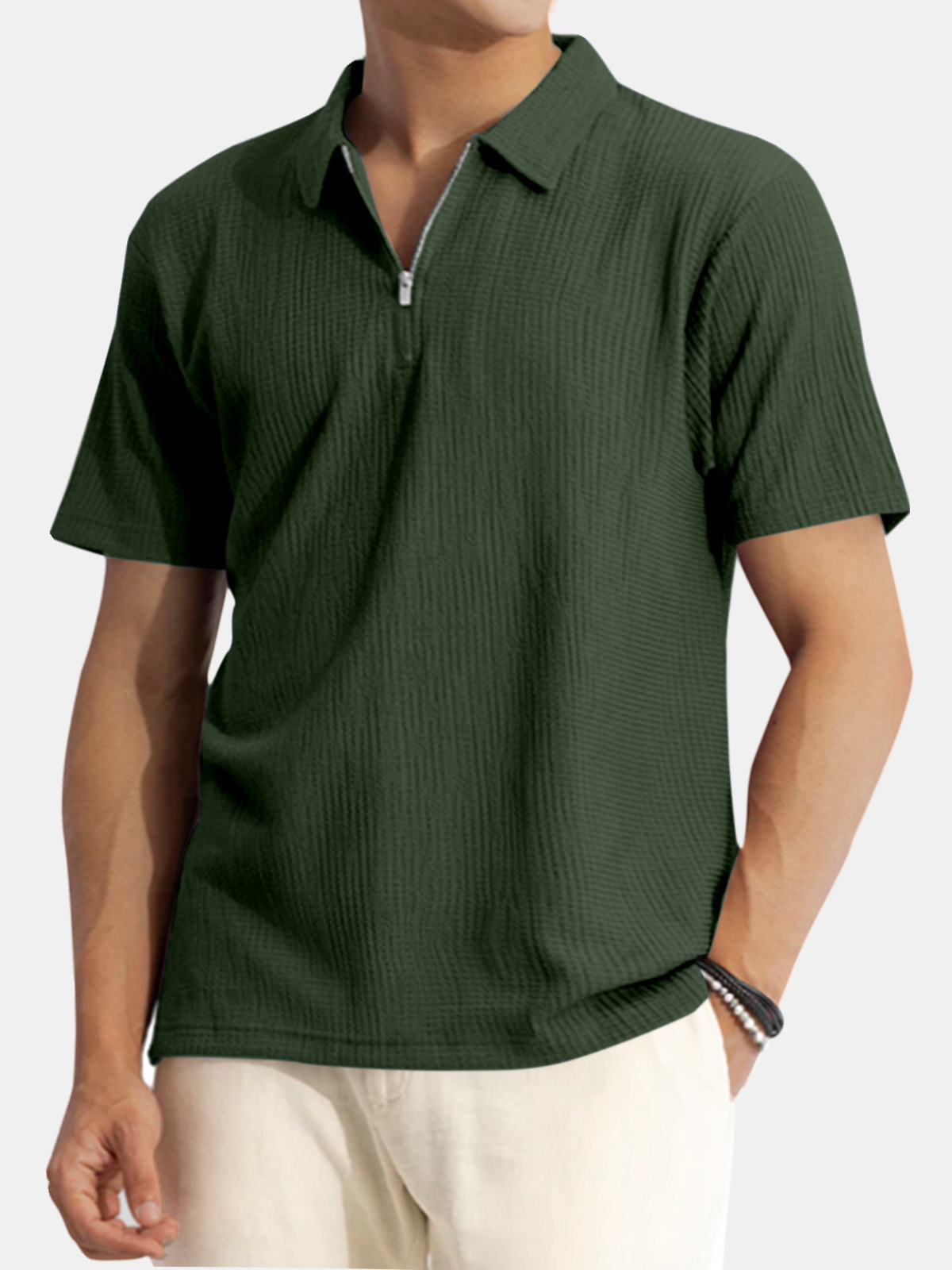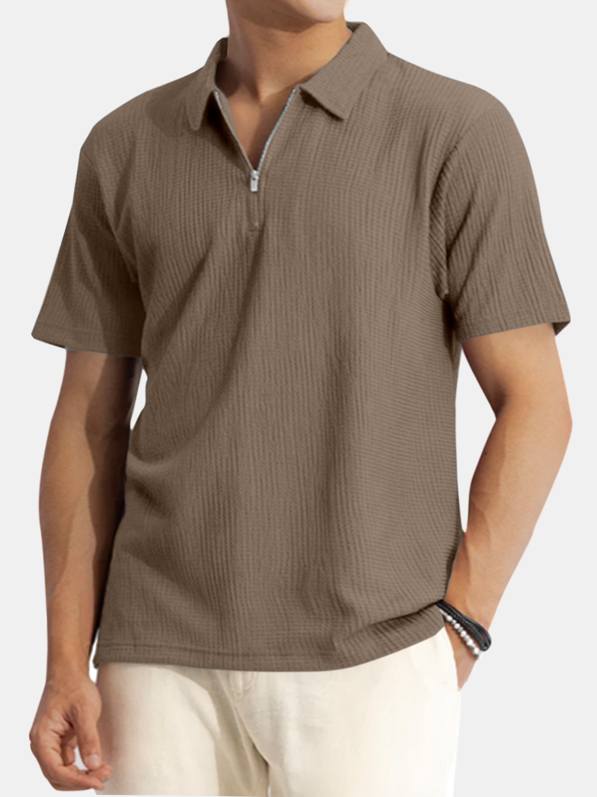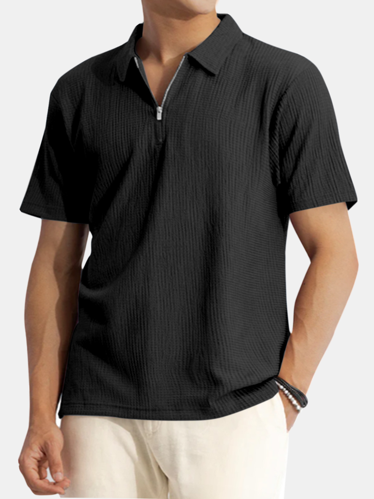 Men's Solid Color Waffle Casual Daily Short Sleeve Polo Shirt