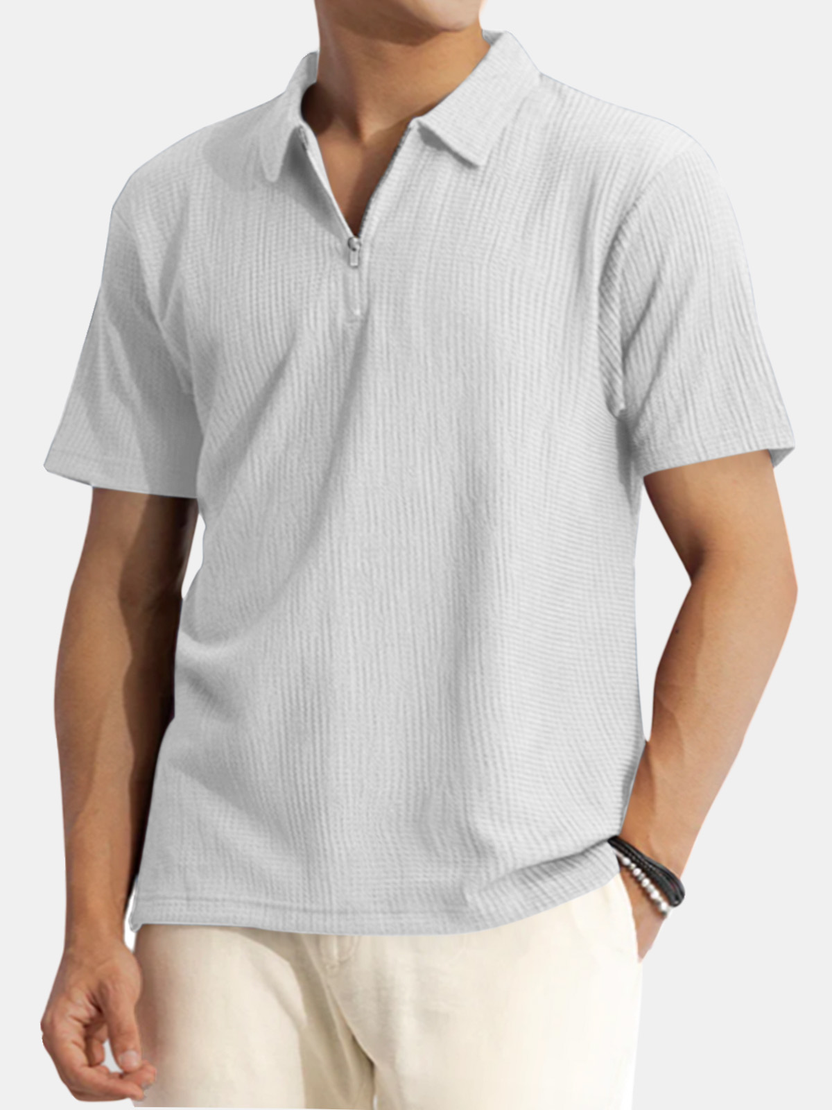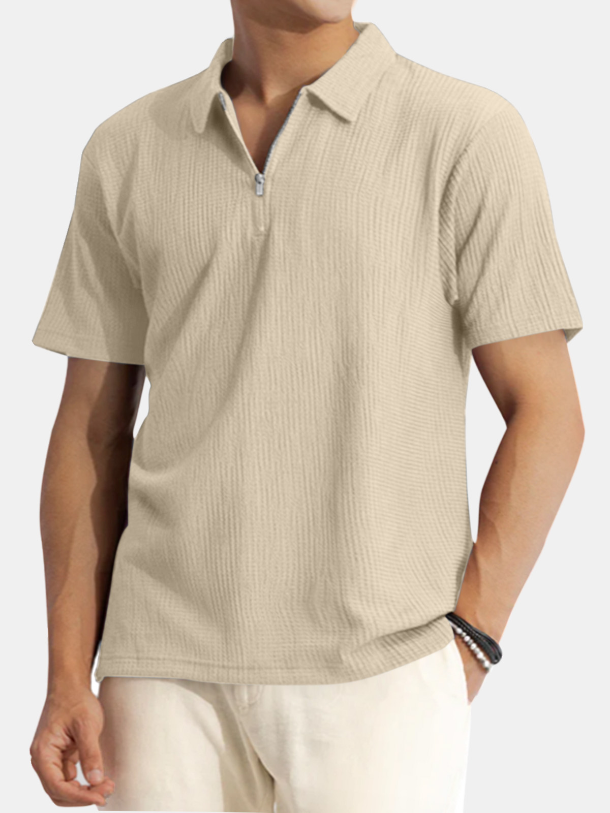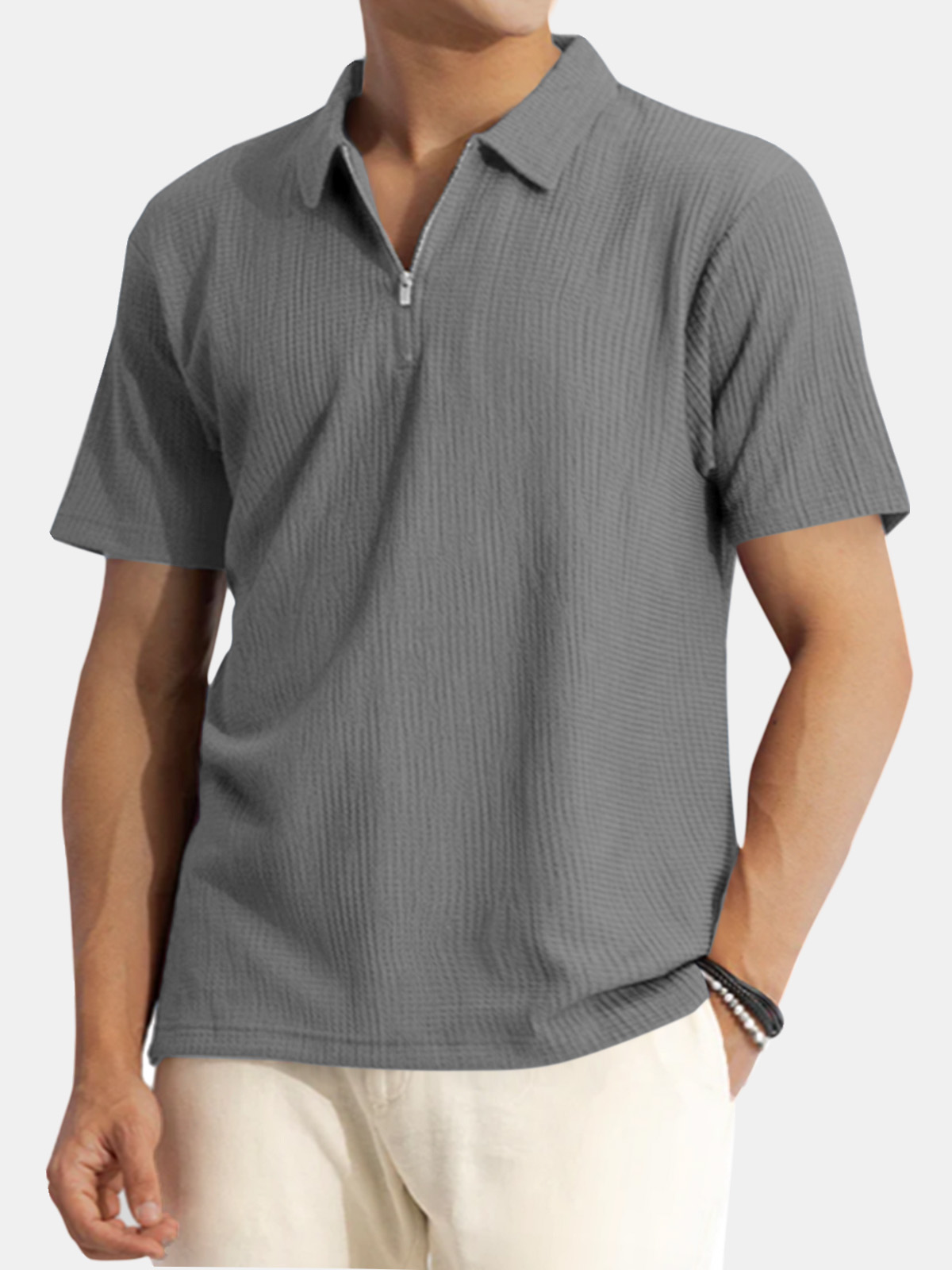 Men's Solid Color Waffle Casual Daily Short Sleeve Polo Shirt