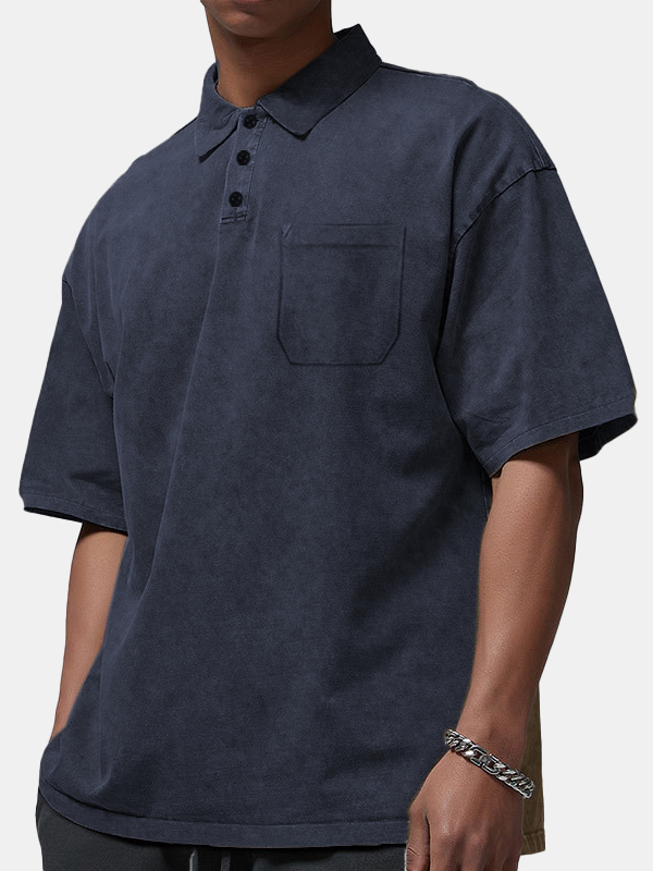 Men's Summer Retro Washed Lapel Short-sleeved Polo Shirt