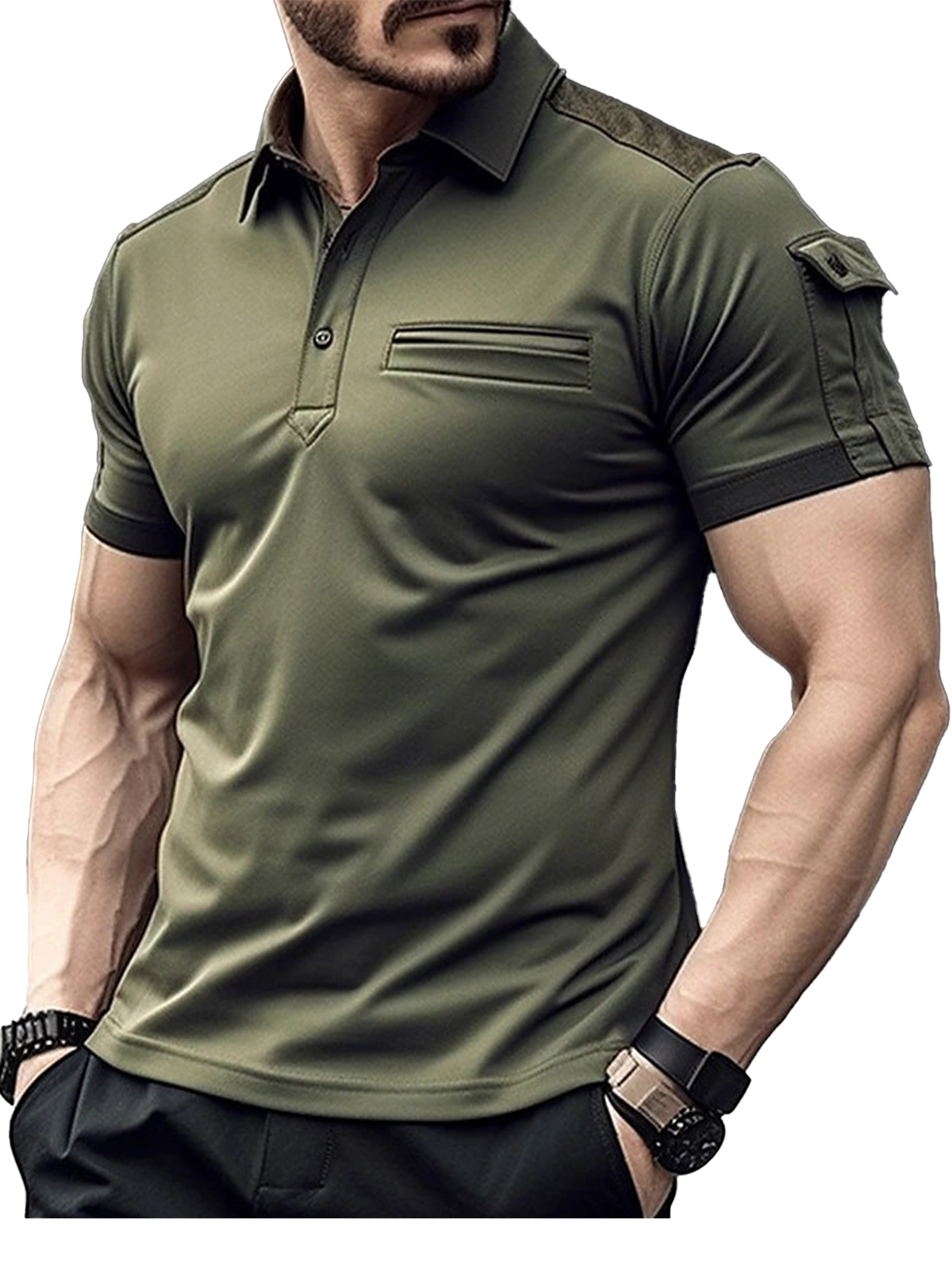 Men's Summer Sports Casual Pocket Lapel Solid Color Linen Polo Shirt