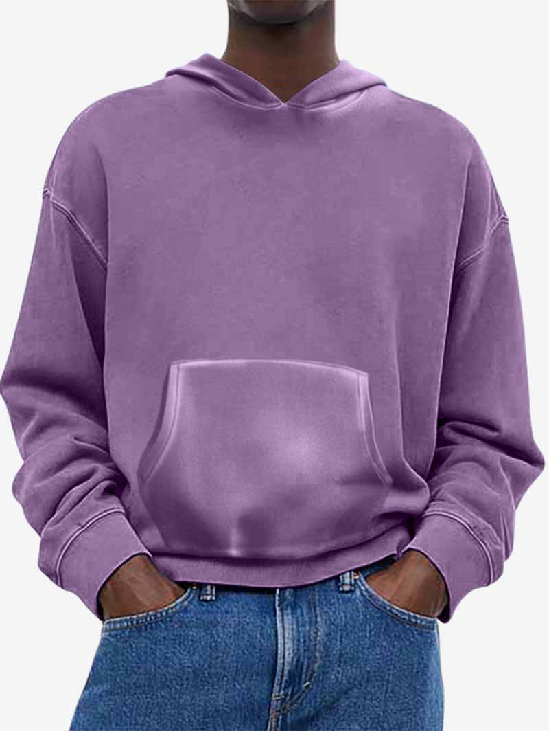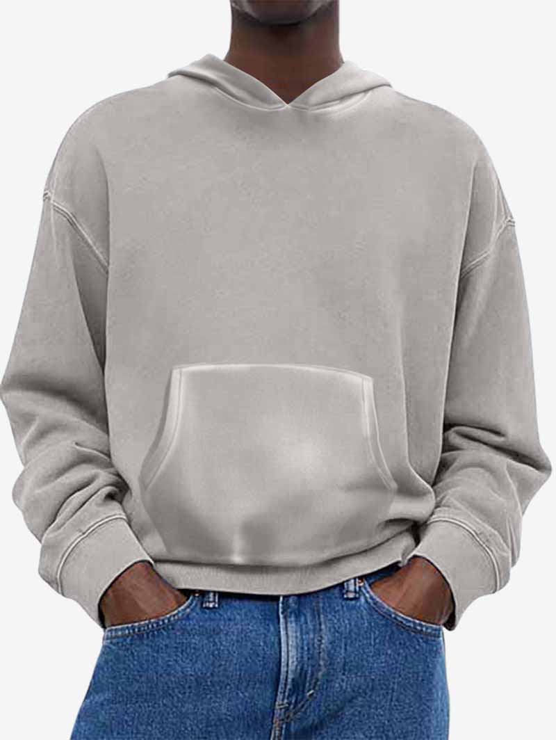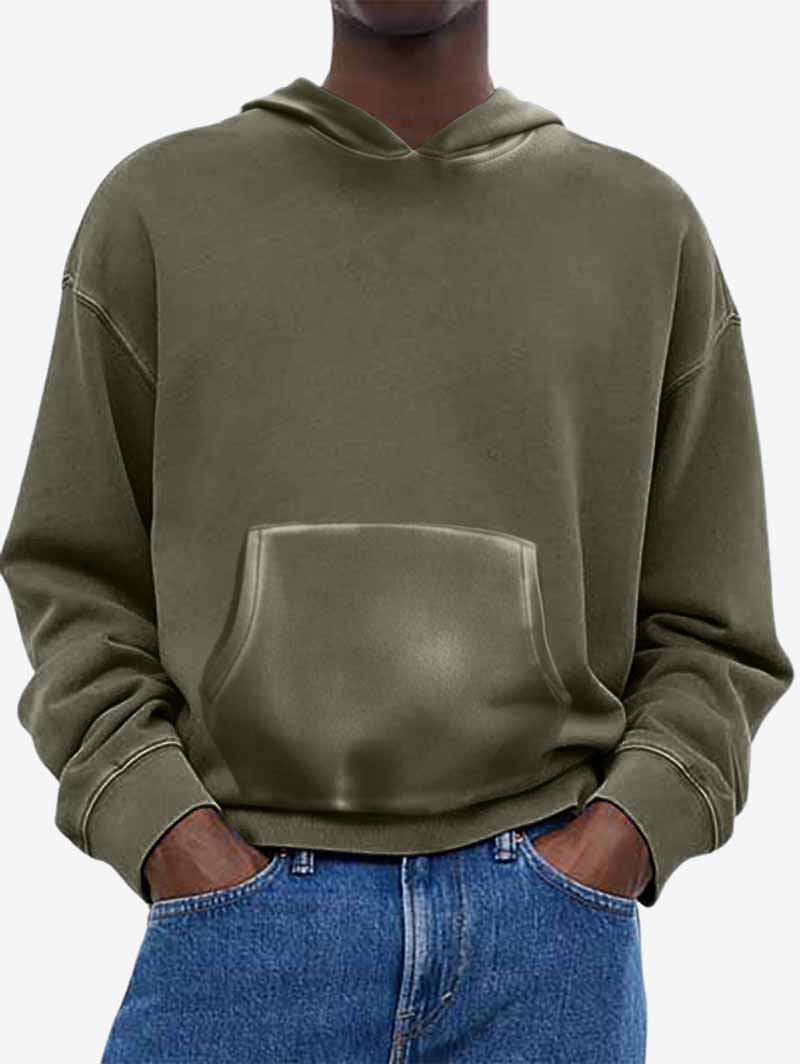 Men's Washed And Distressed Vintage 100% Cotton Pocket Hooded Sweatshirt