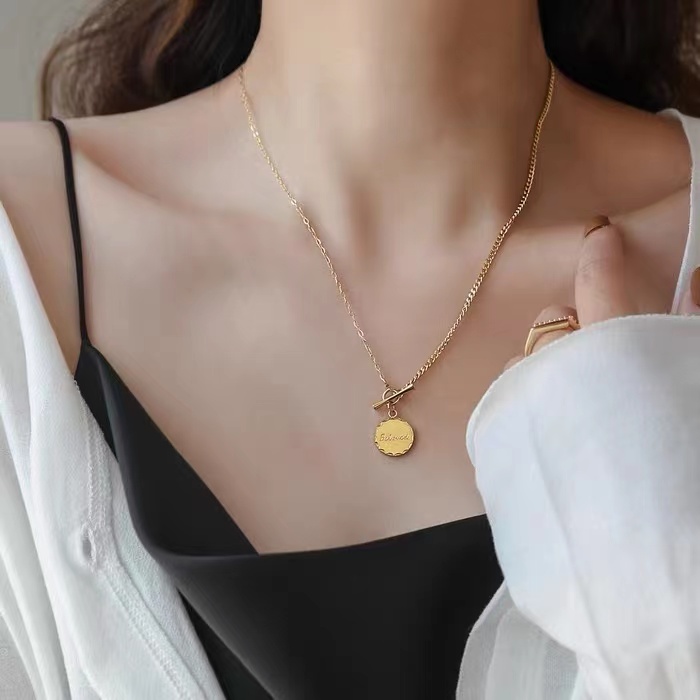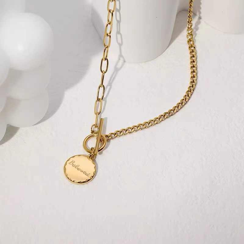 A design of splicing two different chains with an OT buckle. Match any styles of your daily outfit, it will look great!