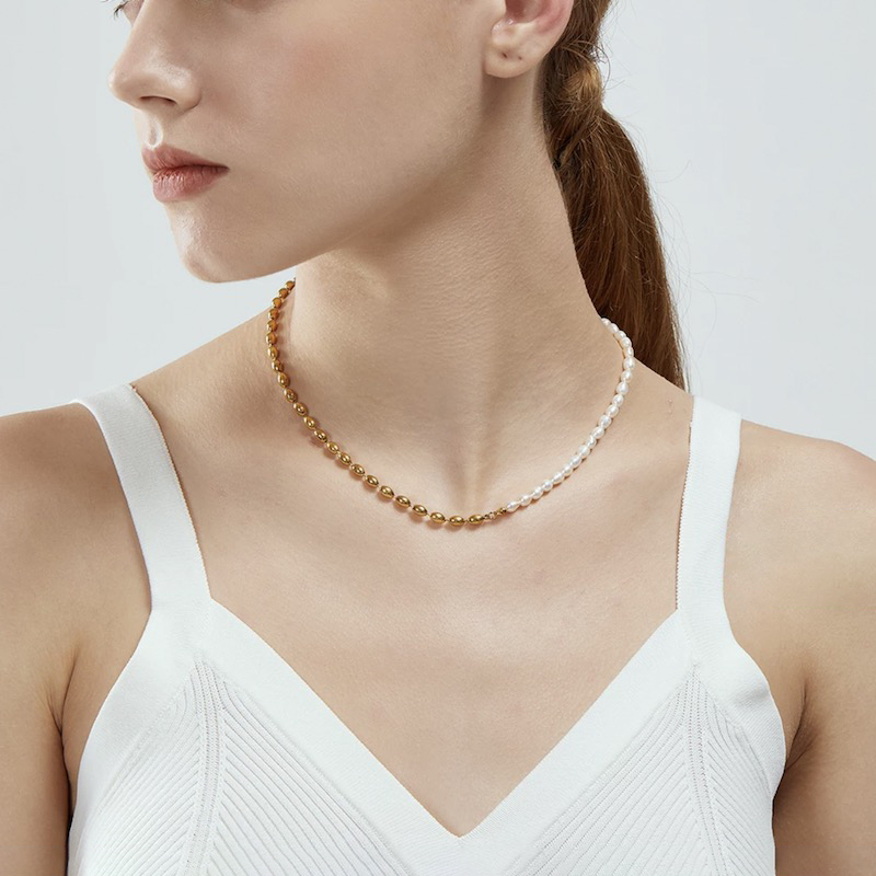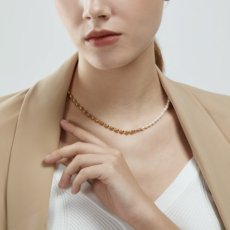 A little vintage taste piece, but if you are looking for a dainty elegant piece, you can't go wrong with pearl! The splicing design also makes it stand out more!