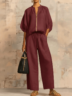 Upgrade your wardrobe with this linen-cotton two-piece set featuring a relaxed button-down shirt and wide-leg pants. Designed for modern women who appreciate comfort without sacrificing style, this set brings a timeless, laid-back elegance that transitions seamlessly from morning coffee to weekend outings.